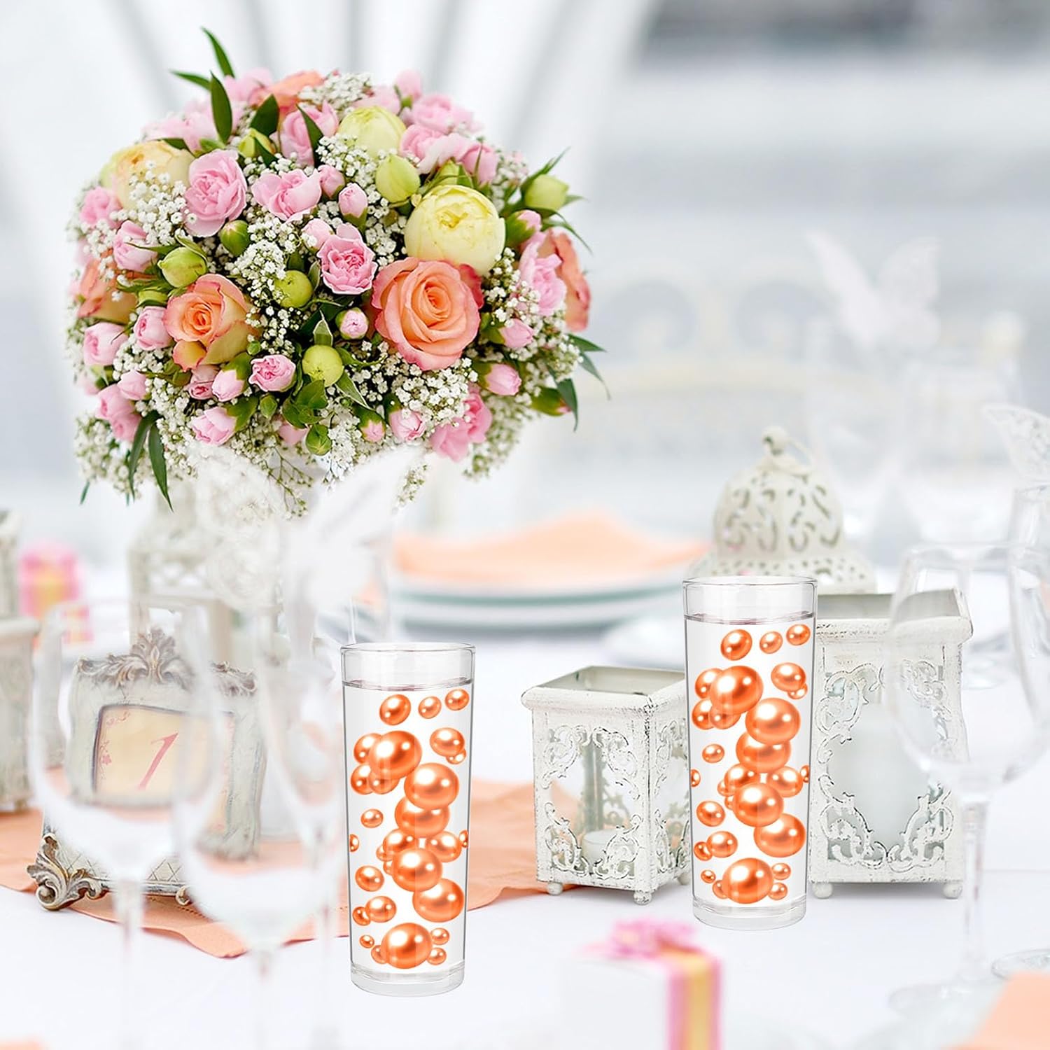 - ăBeads for Decorationăfake pearls are ideal as vase fillers, the pearl decor surprises your family, and friends, Vase Beads for centerpieces are a great romantic and simply elegant, decorate your floral arrangements, use Vase Beads for vases no hole as vase fillers, candle plate decorations, give you a sense of beauty and magnificence. decorative pearls perfect for wedding and family graduation bridal shower decorations; birthday, holiday, DIY Crafts.