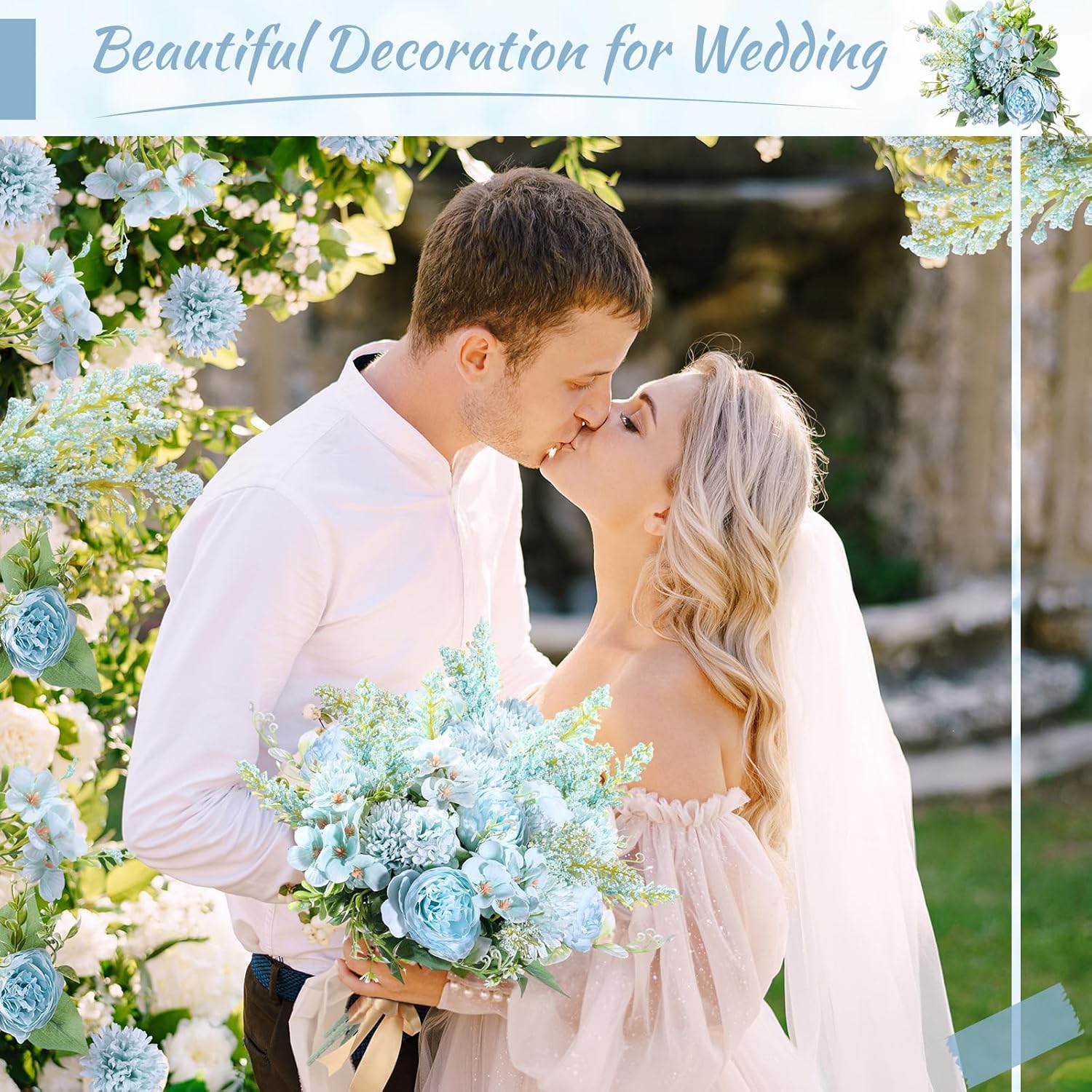 Zeyune 8 Pcs Wedding Silk Flowers Fake Silk Flowers Faux Bouquet Hydrangea Bouquets for Wedding Birthday Party Table Centerpieces Home Decoration(Blue,Peony)