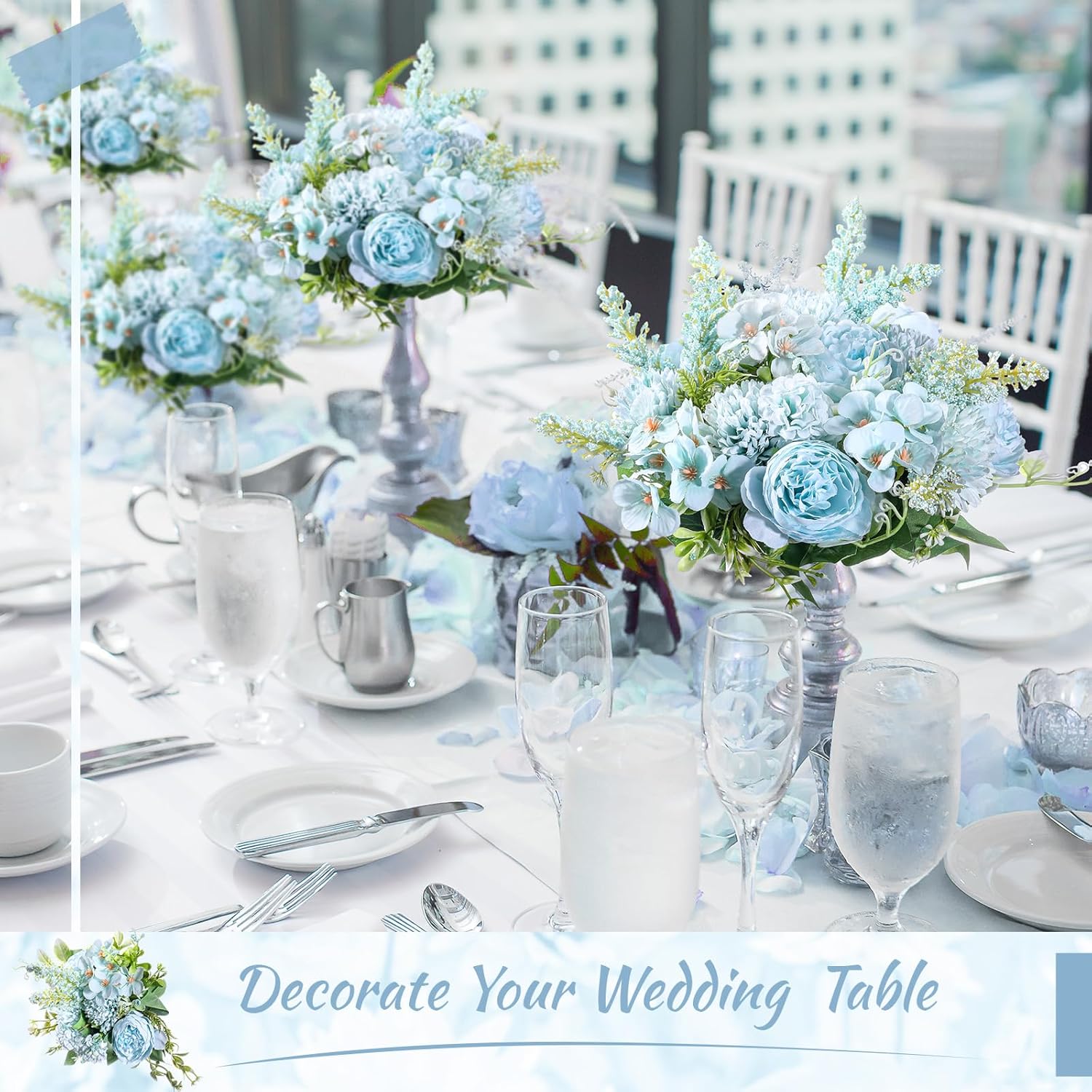 - Quality Material Ensures Longevity: our blue flower bouquet is made from quality silk and plastic material, promising reliability and a longer lifespan than your average floral decor items; The plastic stems are well built, ensuring the bouquet stays put together for long periods of time