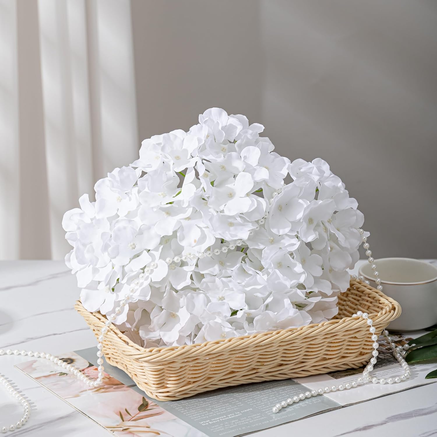 - Usage: The pearl trim by the yard is perfect for Christmas tree, cakes, wreaths, bowl filler, flowers bouquets, tables, chairs and wedding centerpieces.When purchasing, please check which products the product is suitable for decoration on. These pearls garlands are made up of 10mm diameter simulated plastic beads, which are slightly larger.