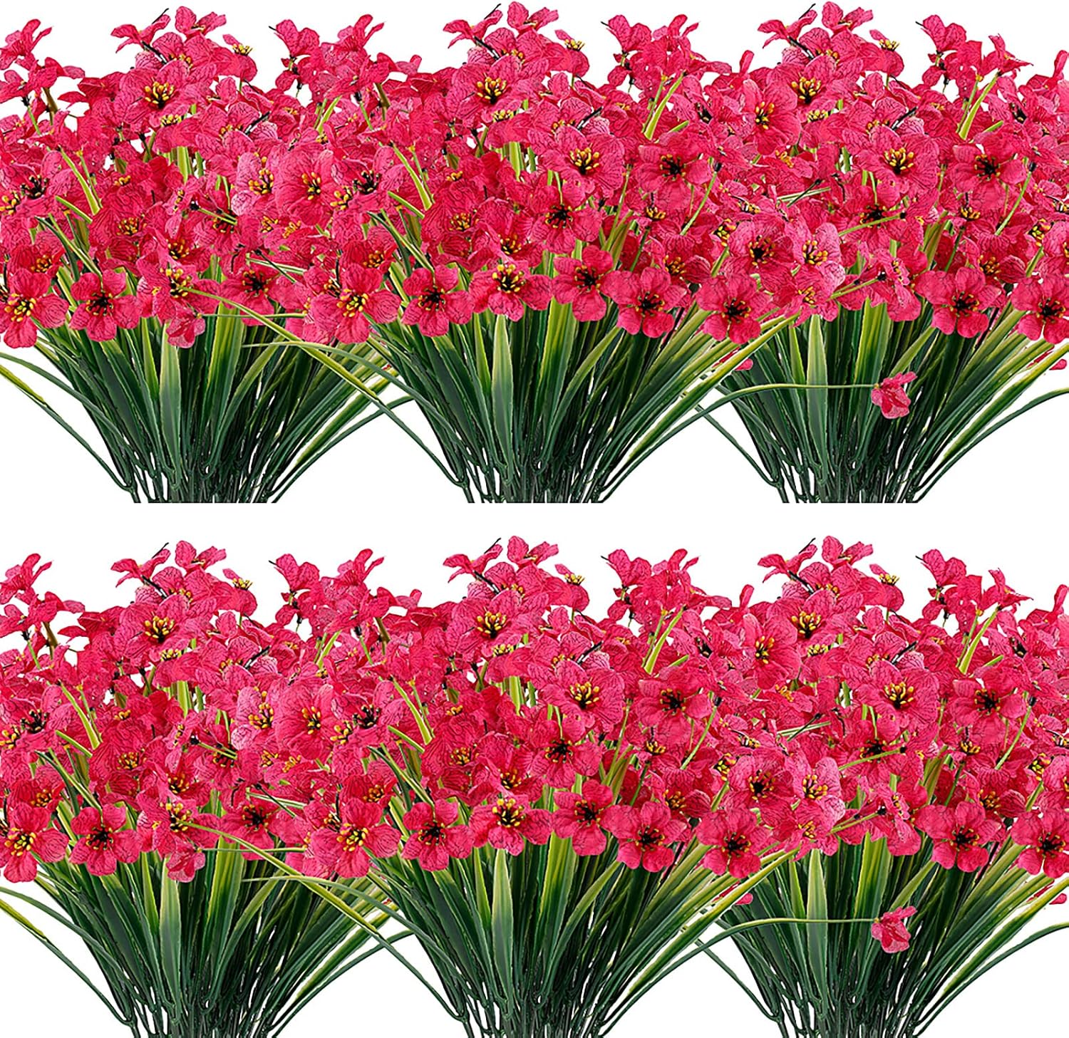 20 Bundles Artificial Flowers Outdoor UV Resistant Fake Flowers No Fade Faux Plastic Plants Garden Porch Window Box Decorating(Rose Red)…