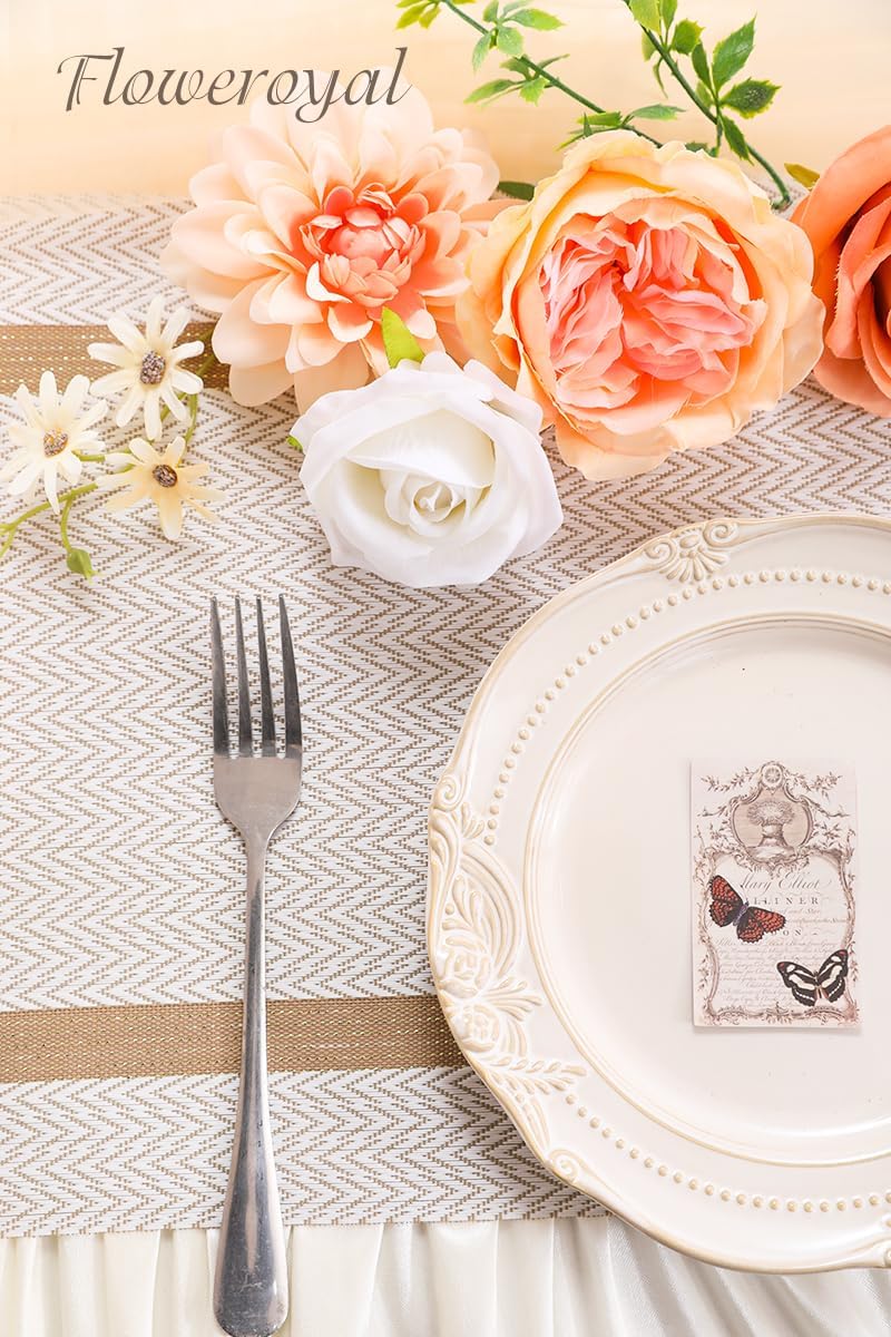Floweroyal Artificial Flowers Combo Champagne Flowers Mix Silk Flowers Dahlia Roses with Stems for DIY Wedding Bridal Bouquets, Baby Shower, Floral Arrangement, Table Centerpieces, Home Decorations.