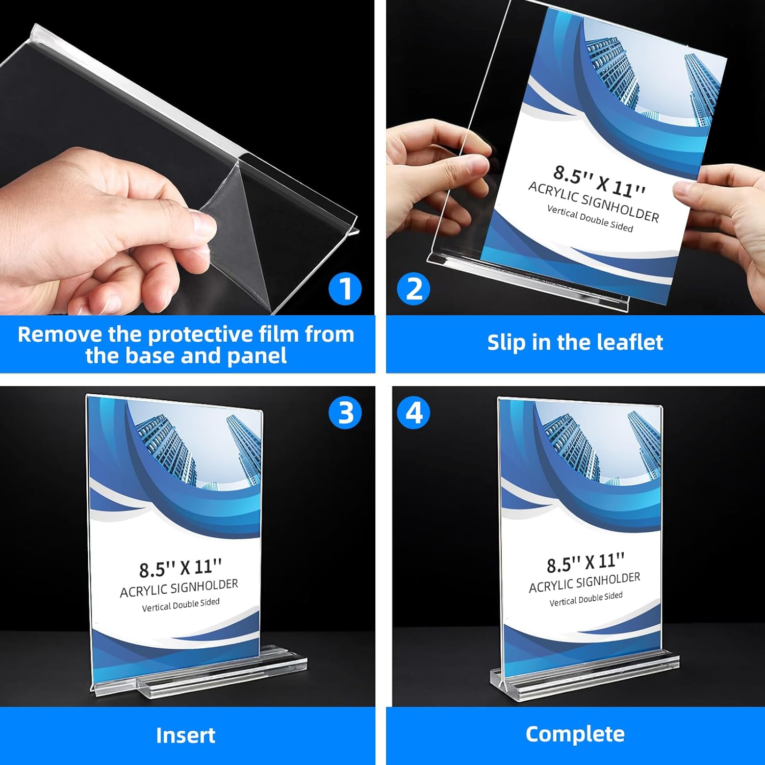 - Premium Quality Acrylic Sign Holder 8.5 x 11'': Made from crystal clear acrylic sheets for exceptional clarity and durability, providing pristine visibility for your signage.