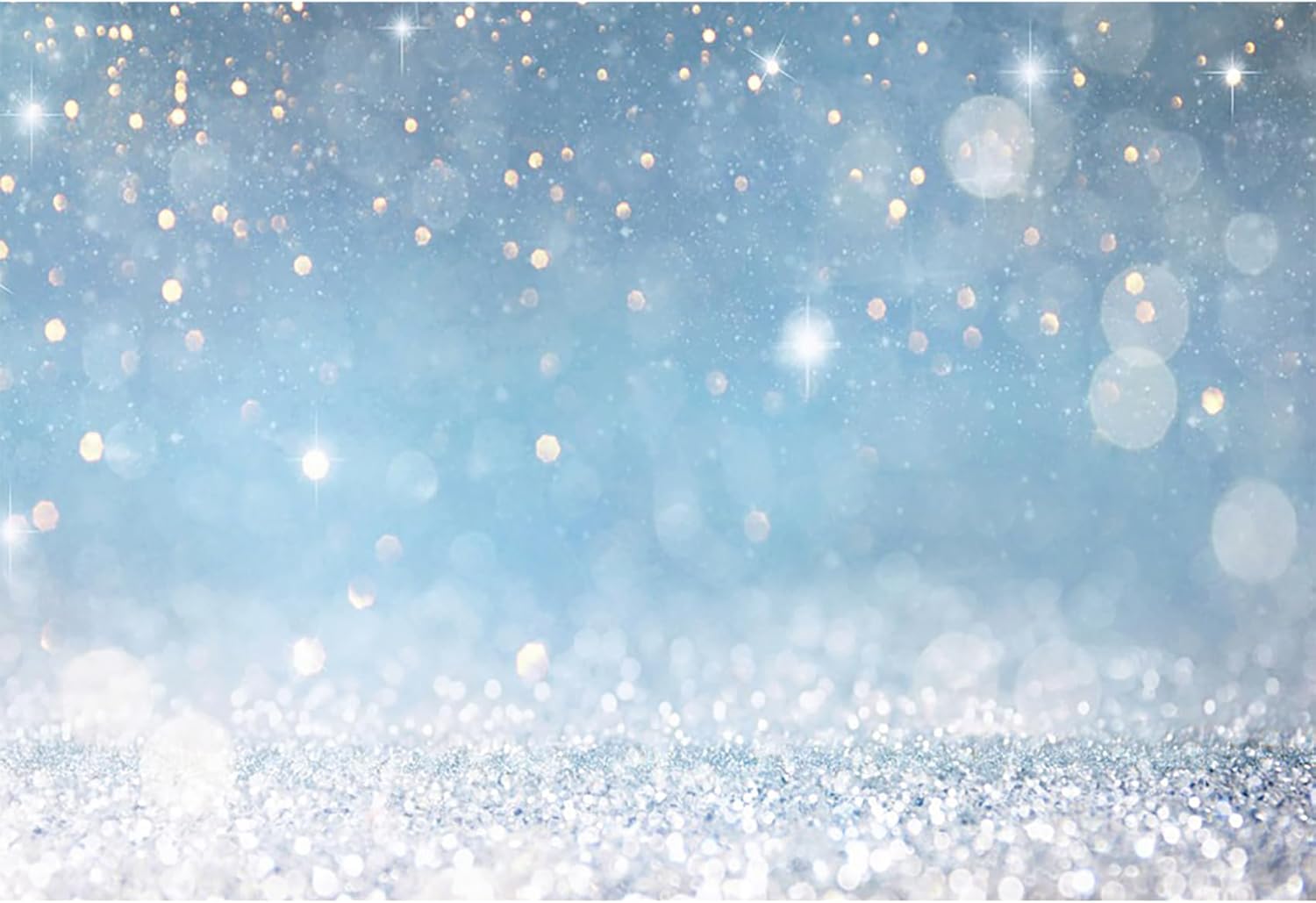10x6.5ft Blue Bokeh (Not Glitter) Backdrops Birthday Party Abstract Golden Sparkling Spots Photography Background Baby Shower Wedding Prom Graduation Party Bokeh Decor Banner Photoshoot Props