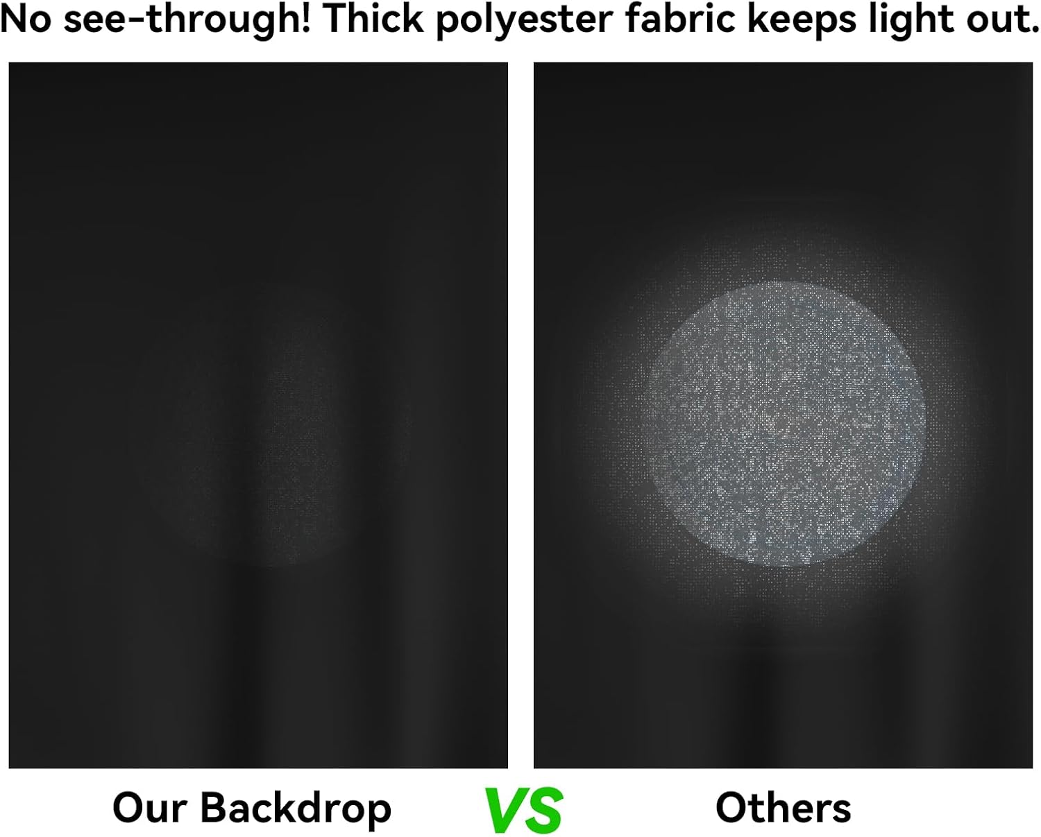 - 【100% POLYESTER FABRIC BLACK SCREEN】The Vevelux black photo backdrop is crafted from high-density 100% polyester, featuring: seamless & double-sided use, non-reflective, true-color (no color cast), fade & pilling resistant, superior drape with minimal wrinkles and quick recovery, lightweight & portable for easy storage/transport. Ideal for studio-quality shooting results