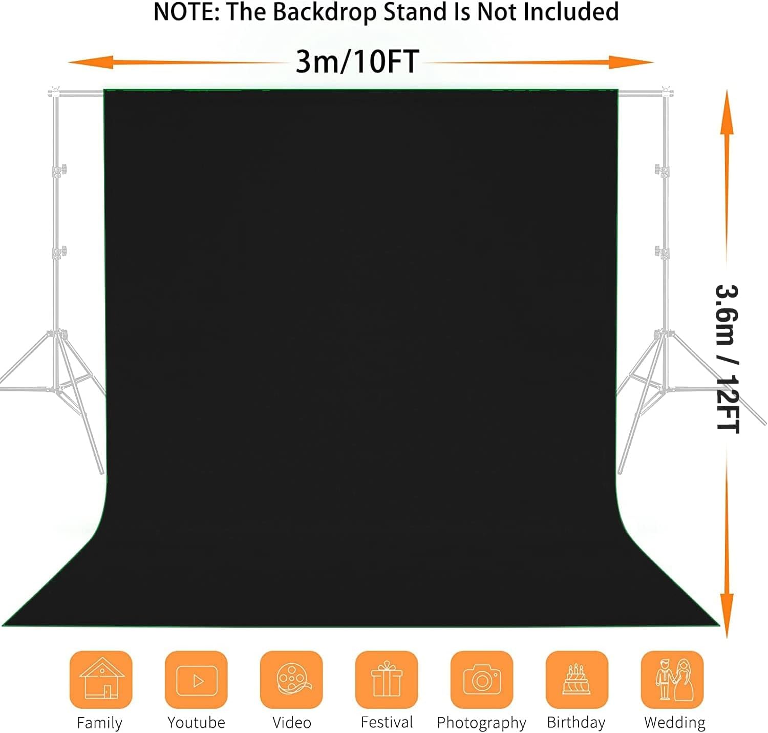 - 【PACKAGE CONTENTS & SUPPORT】1 × Black Backdrop (3.6 × 3 m / 12 × 10 ft), 1 × Operating Manual. 24/7 Customer Support: contact us for any questions or concerns - we guarantee professional assistance to resolve your issues promptly