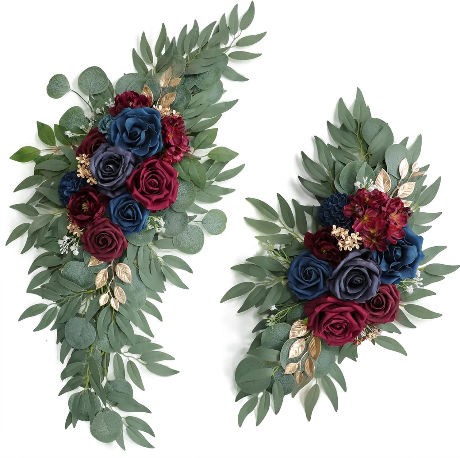 Artificial Navy Blue Wedding Arch Flower Swags Set of 2 for Wedding Welcome Signs Floral and Wedding Reception Ceremony Decorations, Burgundy Wedding Flowers Decor