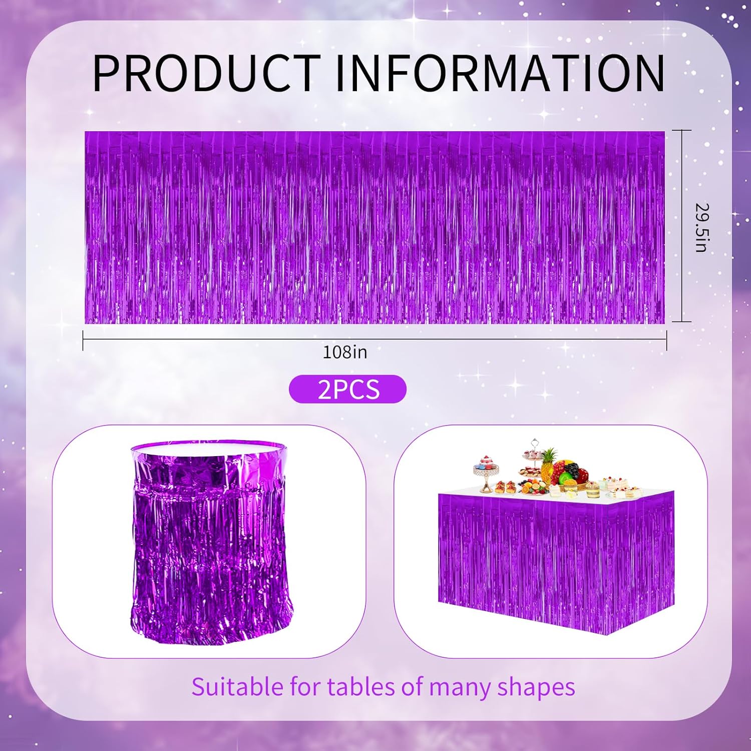 BEISHIDA 2 Pack Dark Purple Metallic Tinsel Foil Fringe Table Skirts for Rectangle and Round Tables - Birthday & Holiday Party Decorations