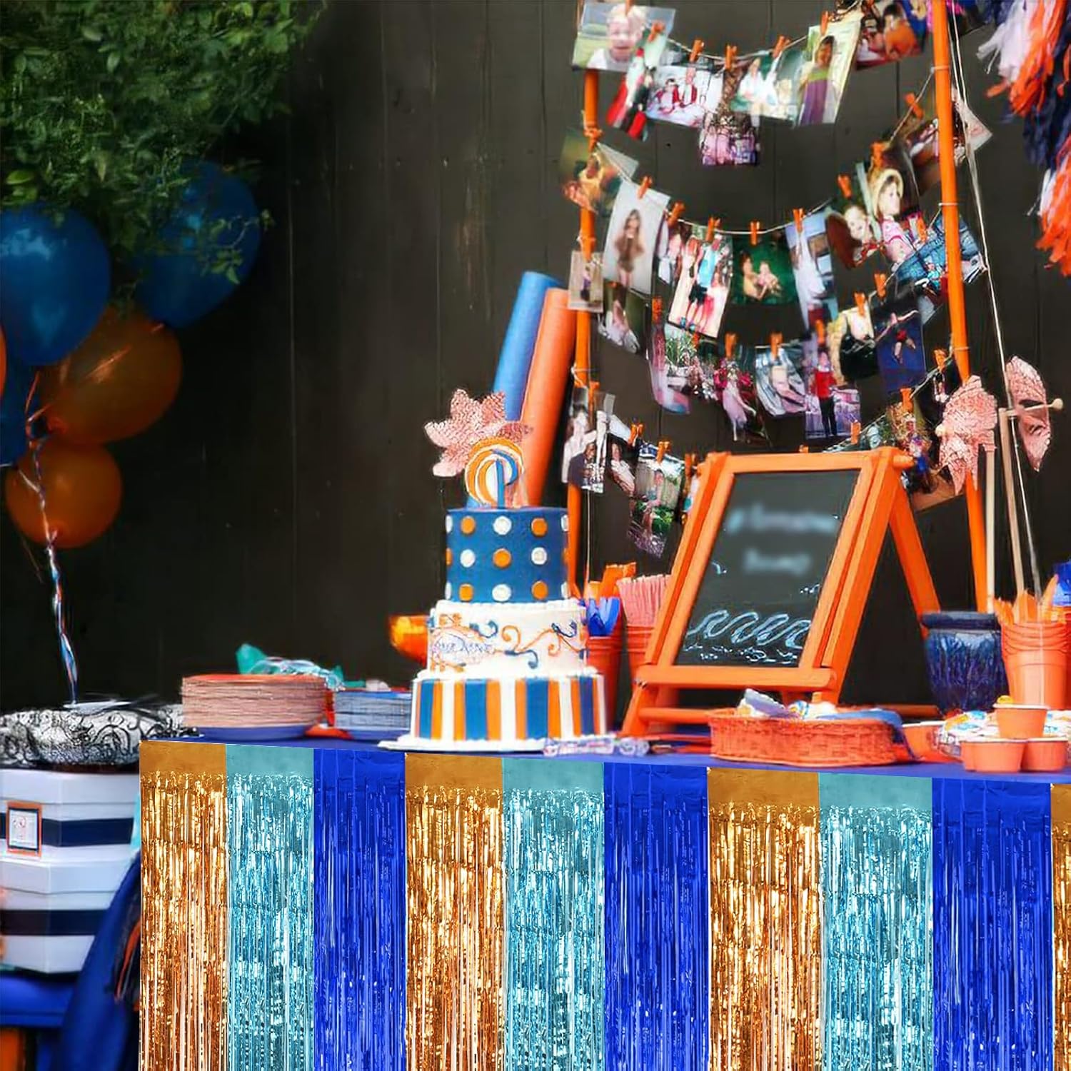 BEISHIDA 2 Pack Orange Blue Light Blue Table Skirts Party Decorations Metallic Tinsel Foil Fringe Table Skirts Table Decors for Rectangle and Round Table Birthday Holiday Party Cartoon Party