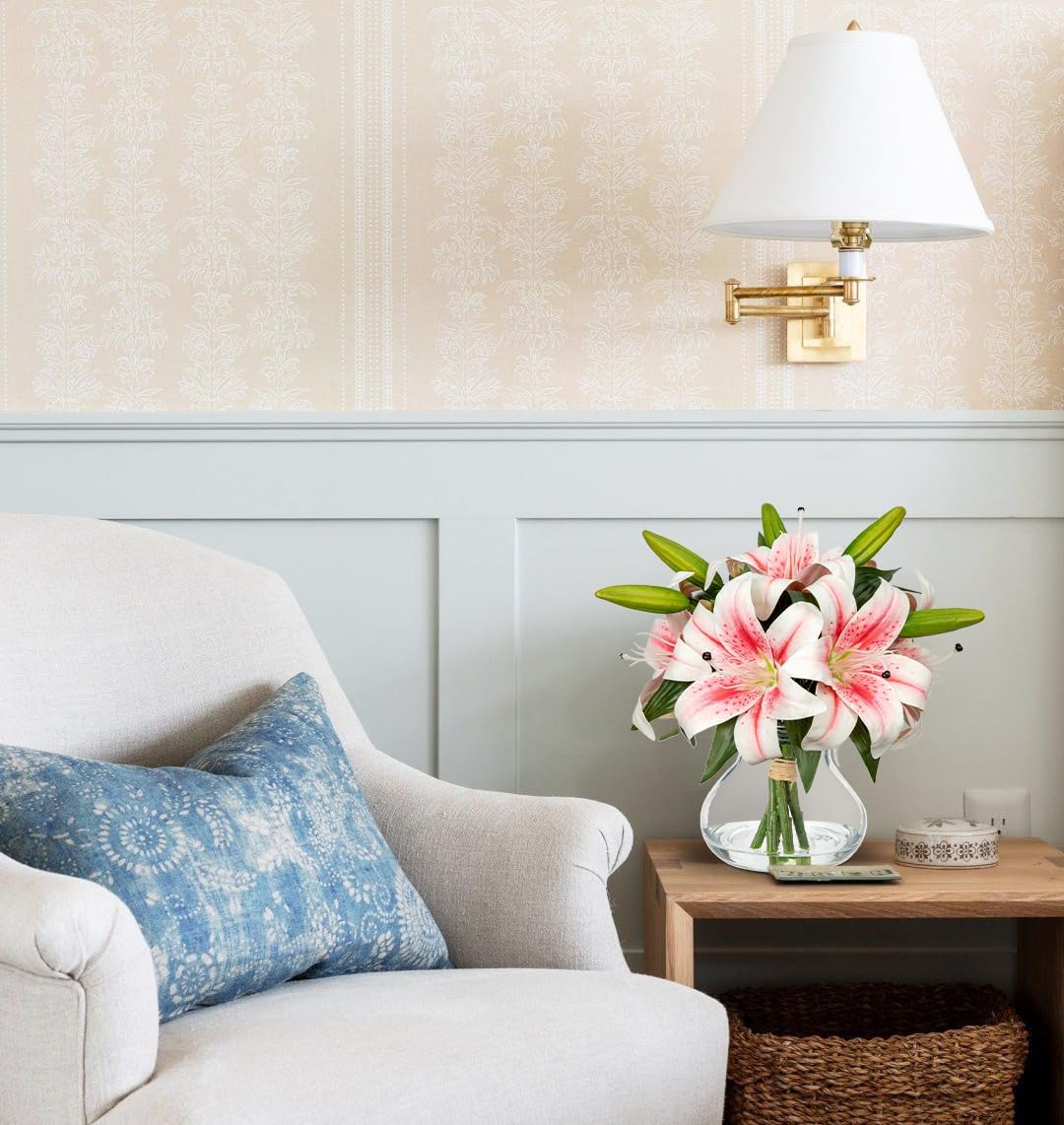 Artificial Flowers Tiger Lily Real Touch with Vase Easter Lily Pink Lilies Silk Faux Flowers Arrangements in Glass Vase with Faux Water Easter Decor Fake Floral Bulk Bouquet for Office Home Decor