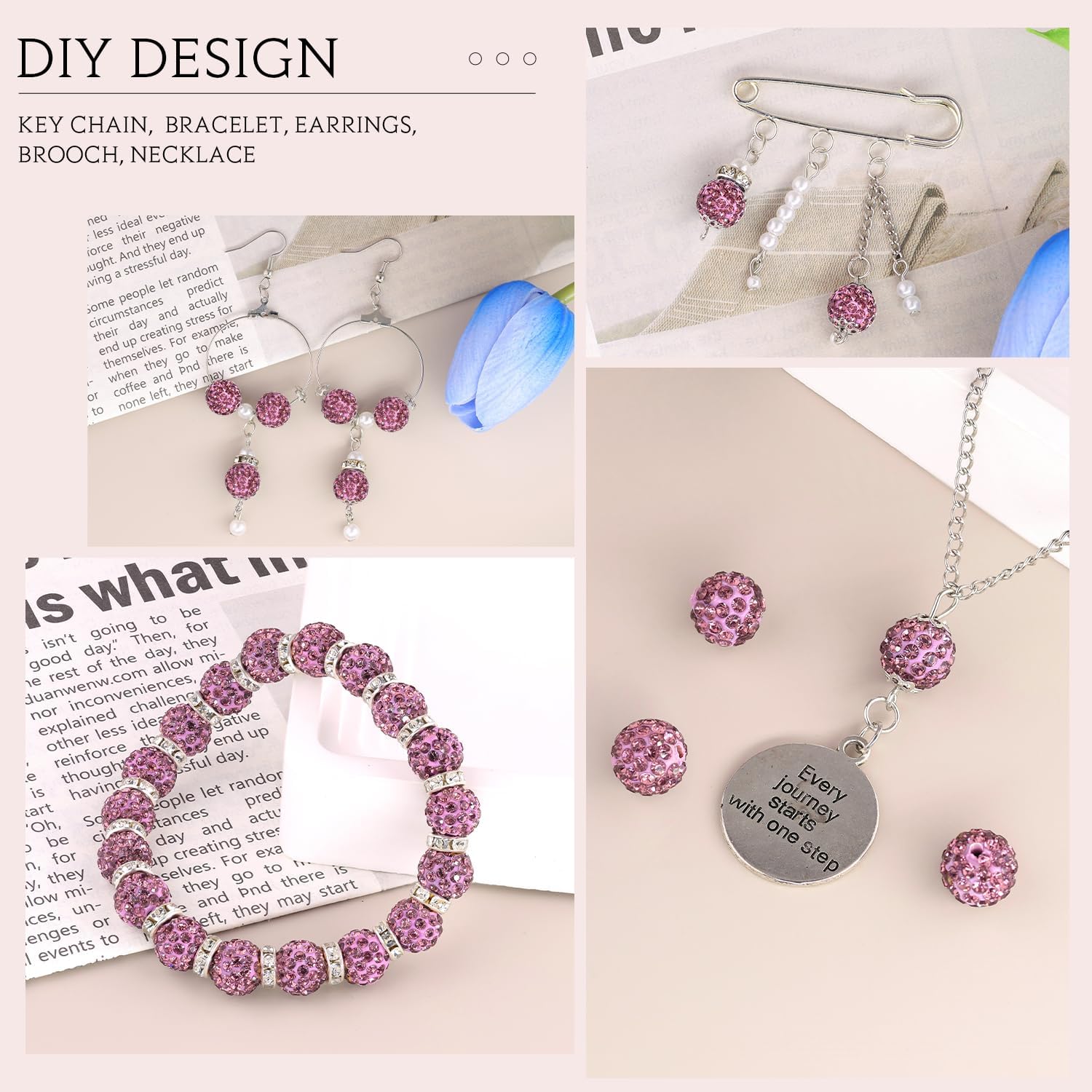 100pcs 10mm Rhinestone Beads for Jewelry Making, Light Purple Shiny Round Shamballa Disco Beads Bulk, Sparkle Crystal Clay Christmas for Bracelet Baseball Necklace Earring Crafting and DIY