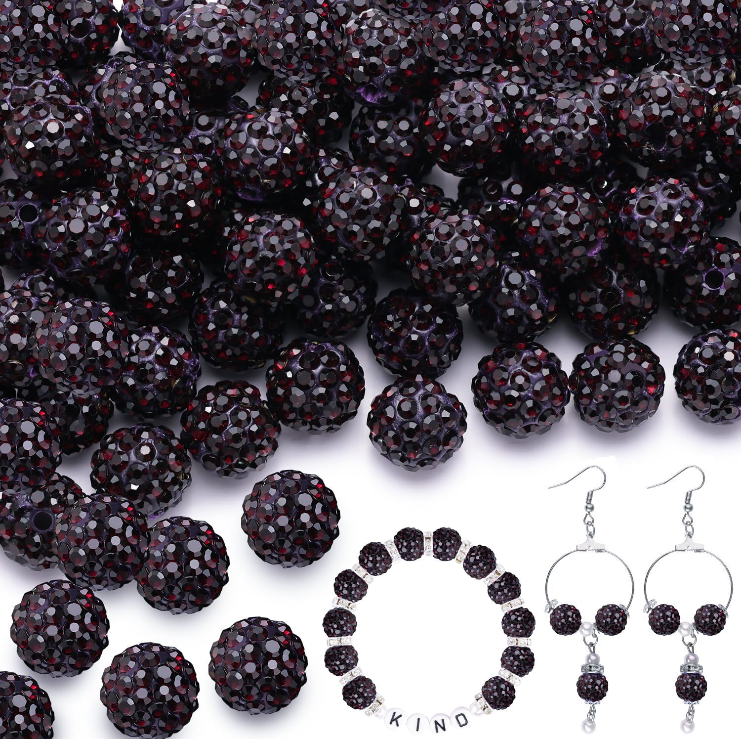 100pcs 10mm Rhinestone Beads for Jewelry Making, Dark Purple Shiny Round Shamballa Disco Beads Bulk, Sparkle Crystal Clay Christmas for Bracelet Baseball Necklace Earring Crafting and DIY