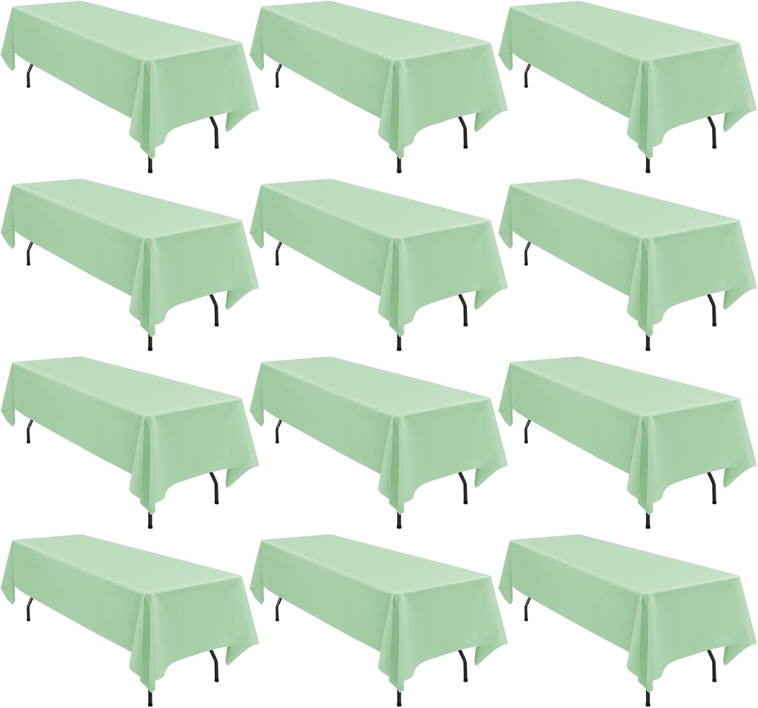 12 Pack 60 x 126 Inch Rectangle Tablecloth Sage Green Polyester Tablecloth for 8 Ft Rectangle Tables, Washable Fabric Table Cloth for Wedding Dining Table Buffet Parties Camping