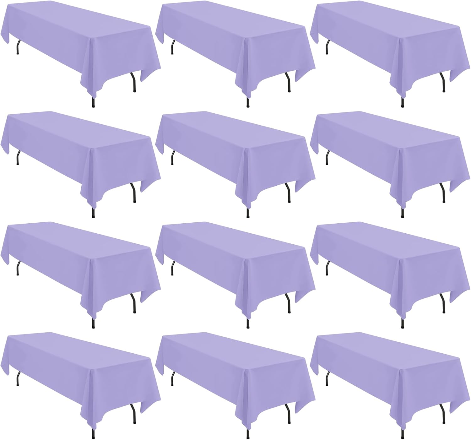 12 Pack 60 x 102 Inch Rectangle Tablecloth Lavender Polyester Tablecloth for 6 Feet Rectangle Tables,Washable Fabric Table Cloth for Wedding Dining Table Buffet Parties Camping