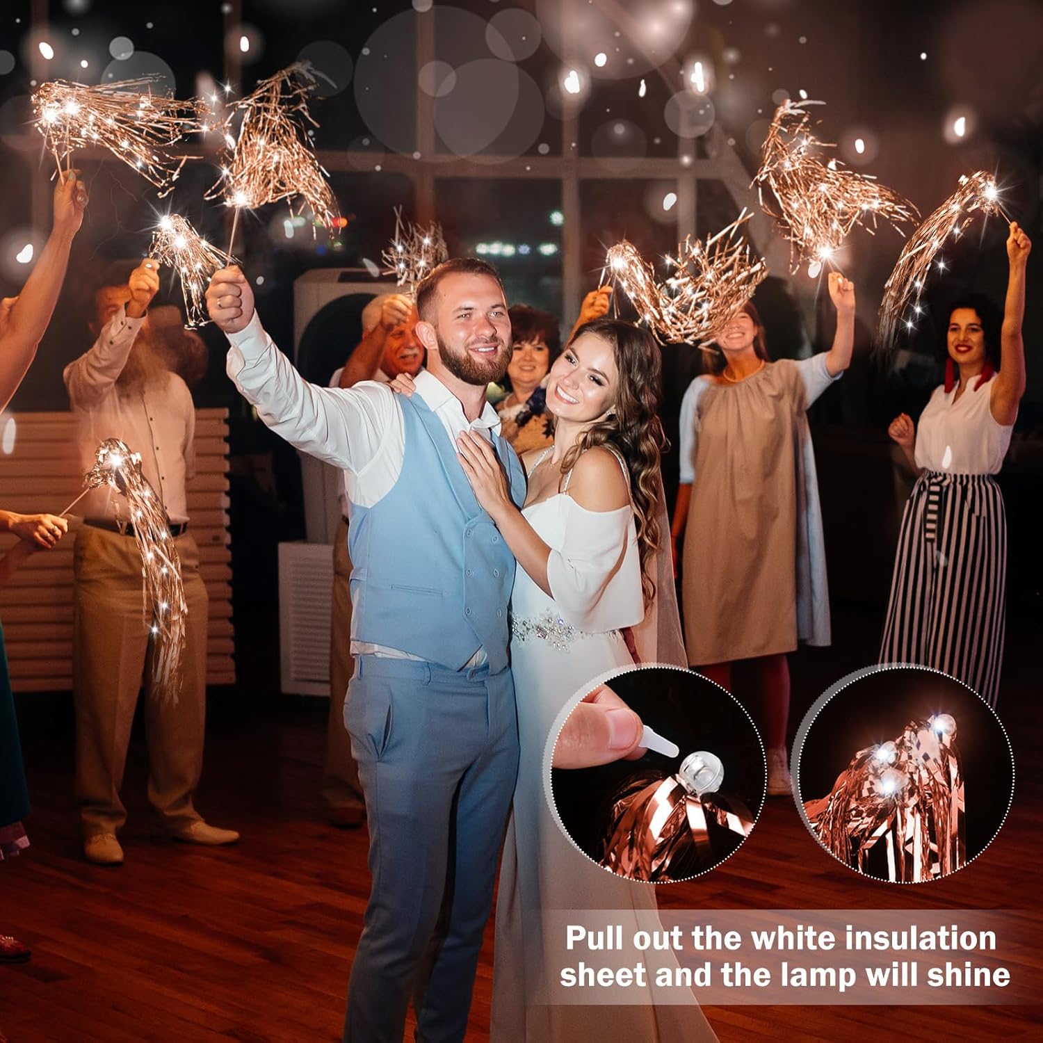 - Quality Material: these light up wedding sparklers are made from sturdy wood sticks, ensuring durability and long lasting use; The tinsel is also firmly attached to reduce chances of falling off during usage, and the smooth stick handle provides a comfortable, safe grip