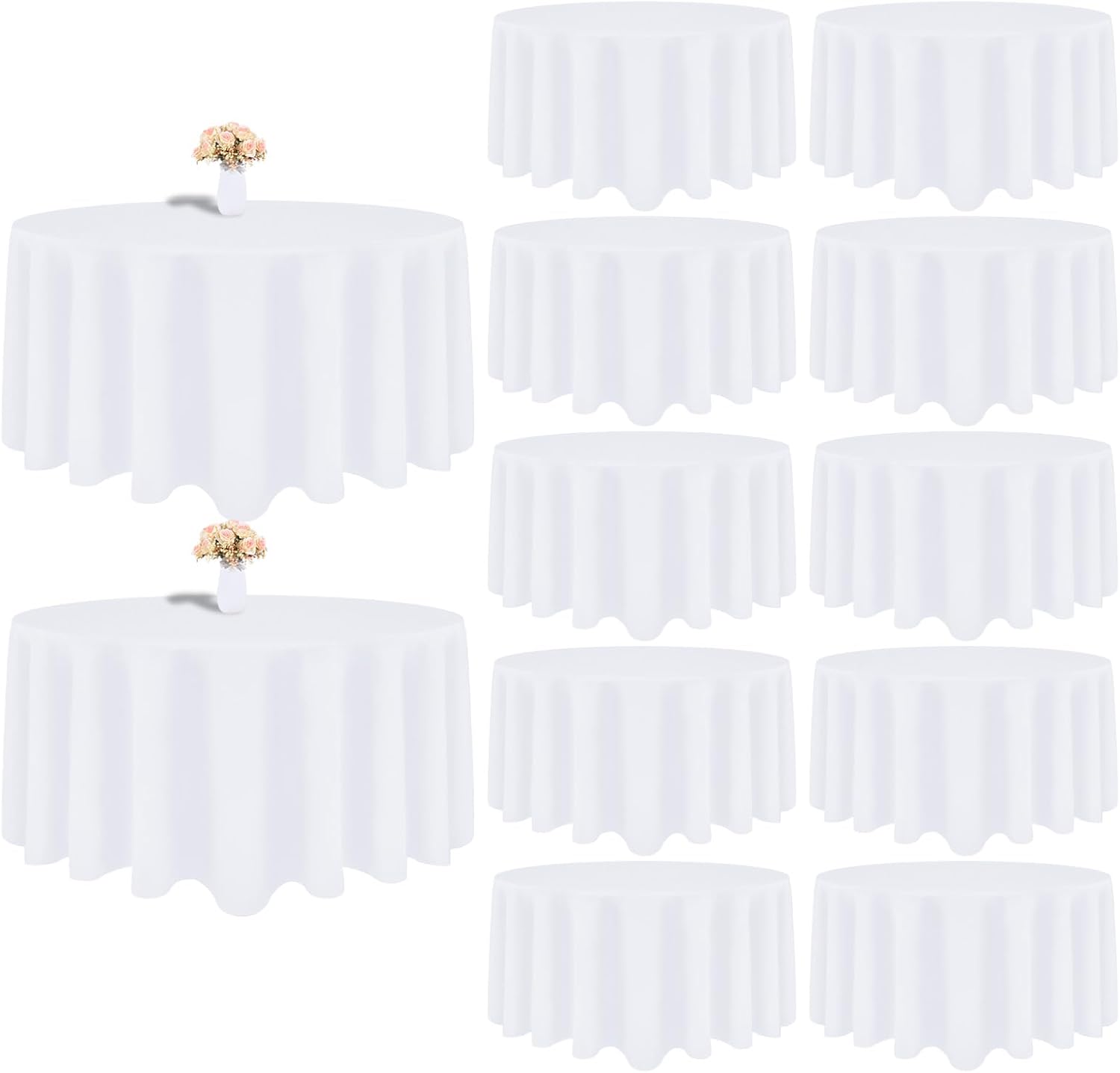 12 Pack White Round Tablecloth 90 Inch White Table Cloth Stain and Wrinkle Resistant Round White Tablecloths Reusable and Washable Polyester Fabric Table Covers for Buffet Wedding Party and Banquet
