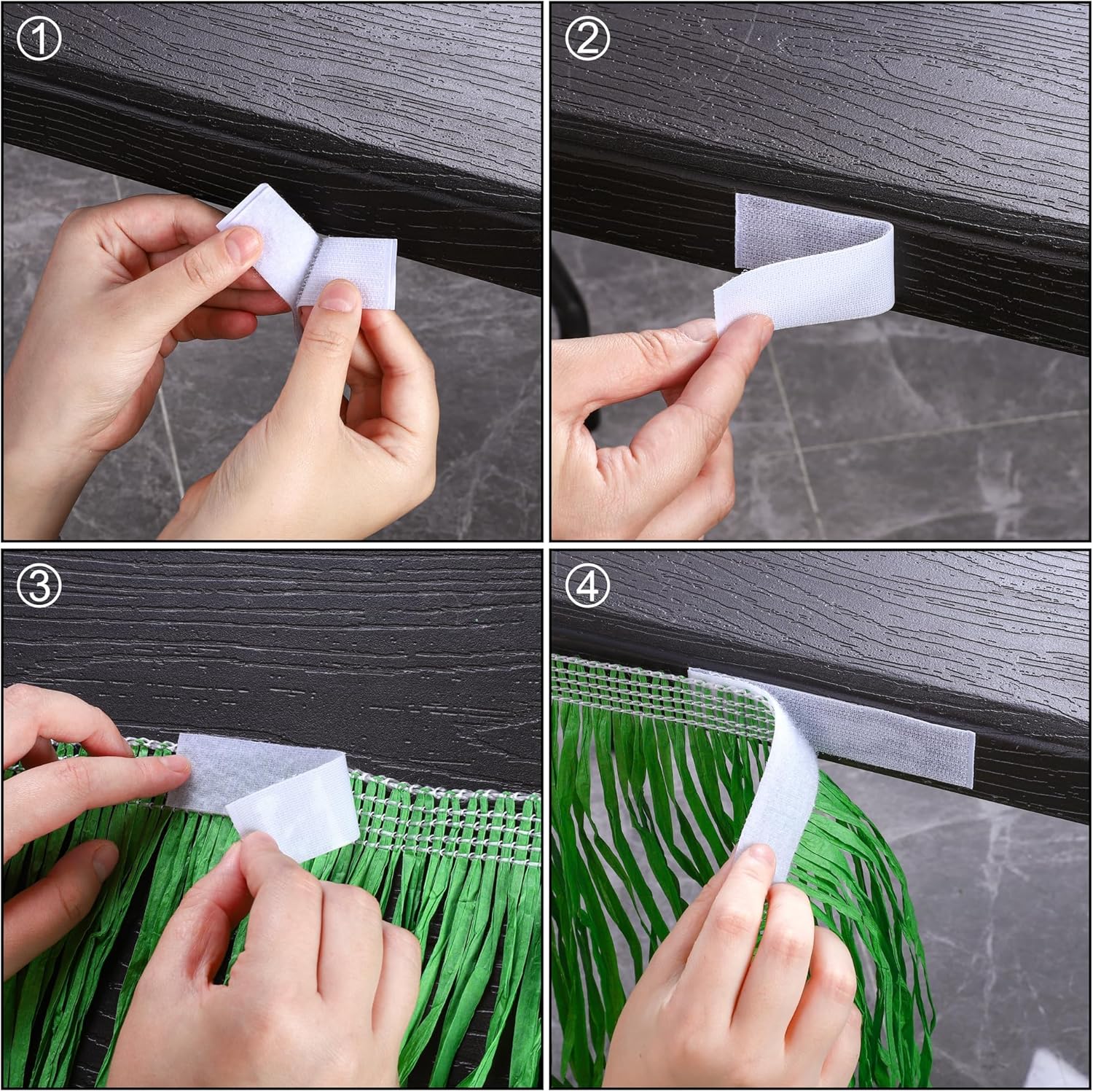 - Package includes: there are 2 packs of Hawaiian luau paper table skirts in each package, coming with 10 pairs of self-adhesive hoop and loops for use, sufficient for multiple-purpose use