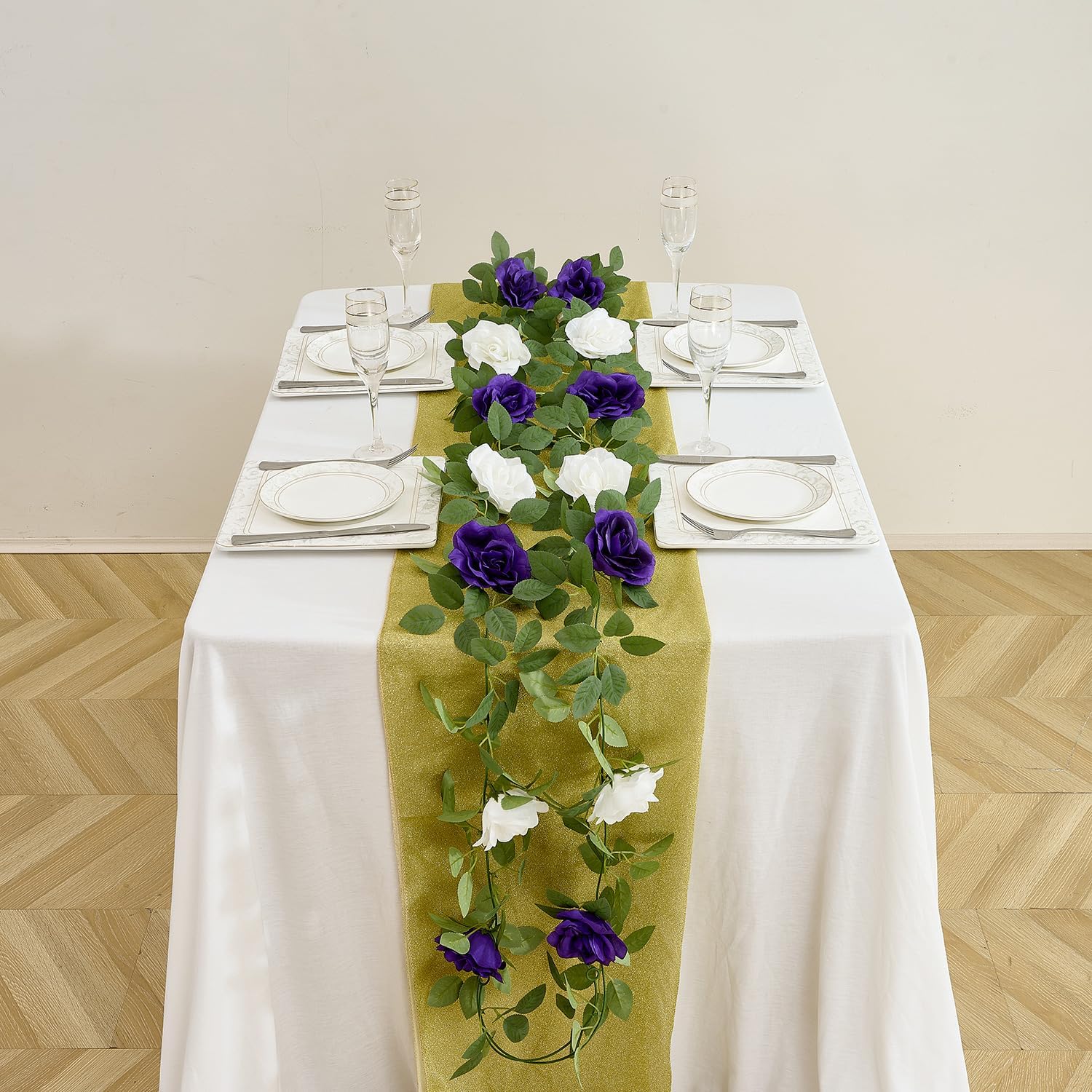 Carlita's Blooms Artificial Rose Garlands Purple Rose Vines Leaves Banners Hanging Floral Garland Fake Flower Vine Wall Decorations
