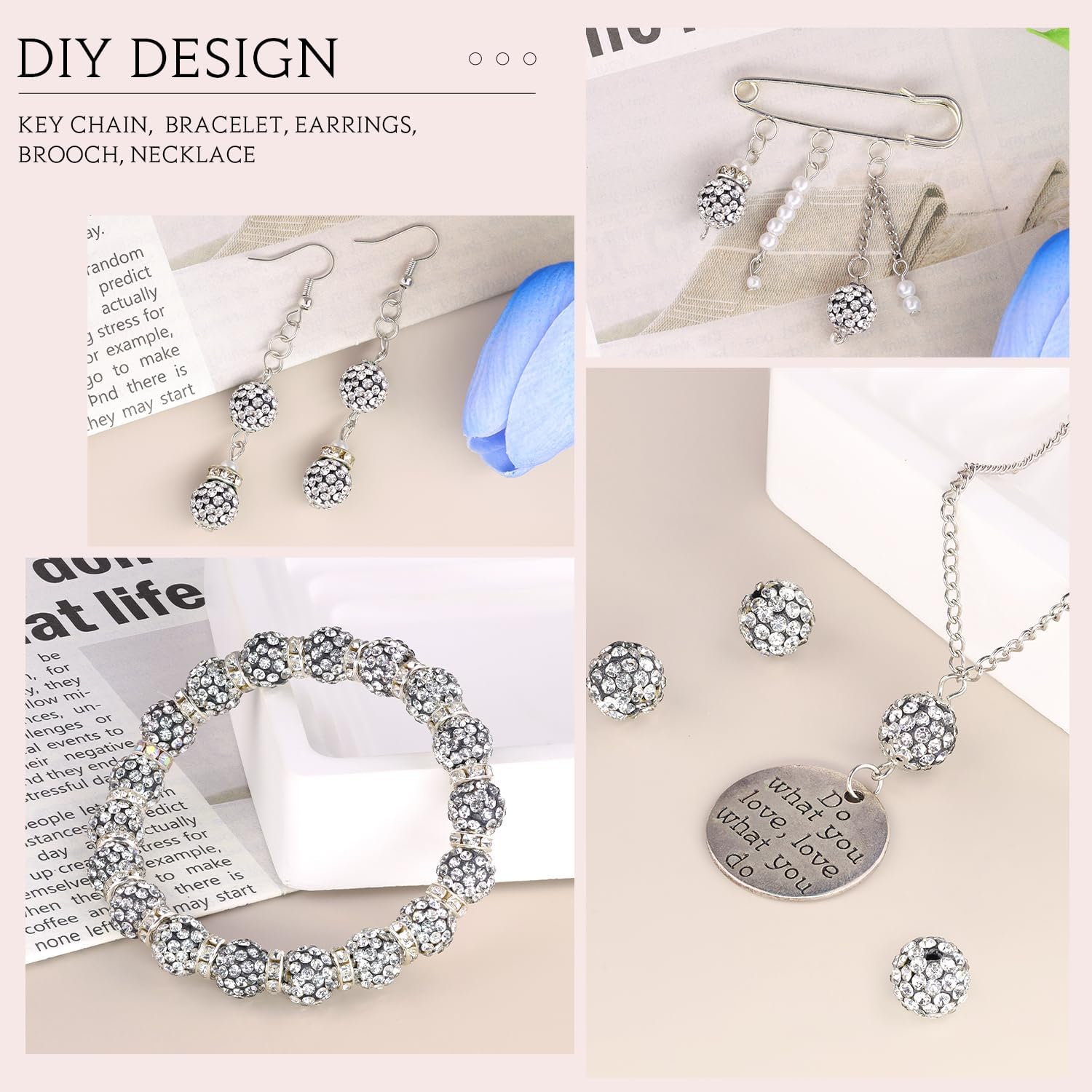 100pcs 10mm Rhinestone Beads for Jewelry Making, Black White Shiny Round Shamballa Disco Ball Beads, Sparkle Crystal Clay Christmas for Bracelet Baseball Necklace Earring Crafting and DIY