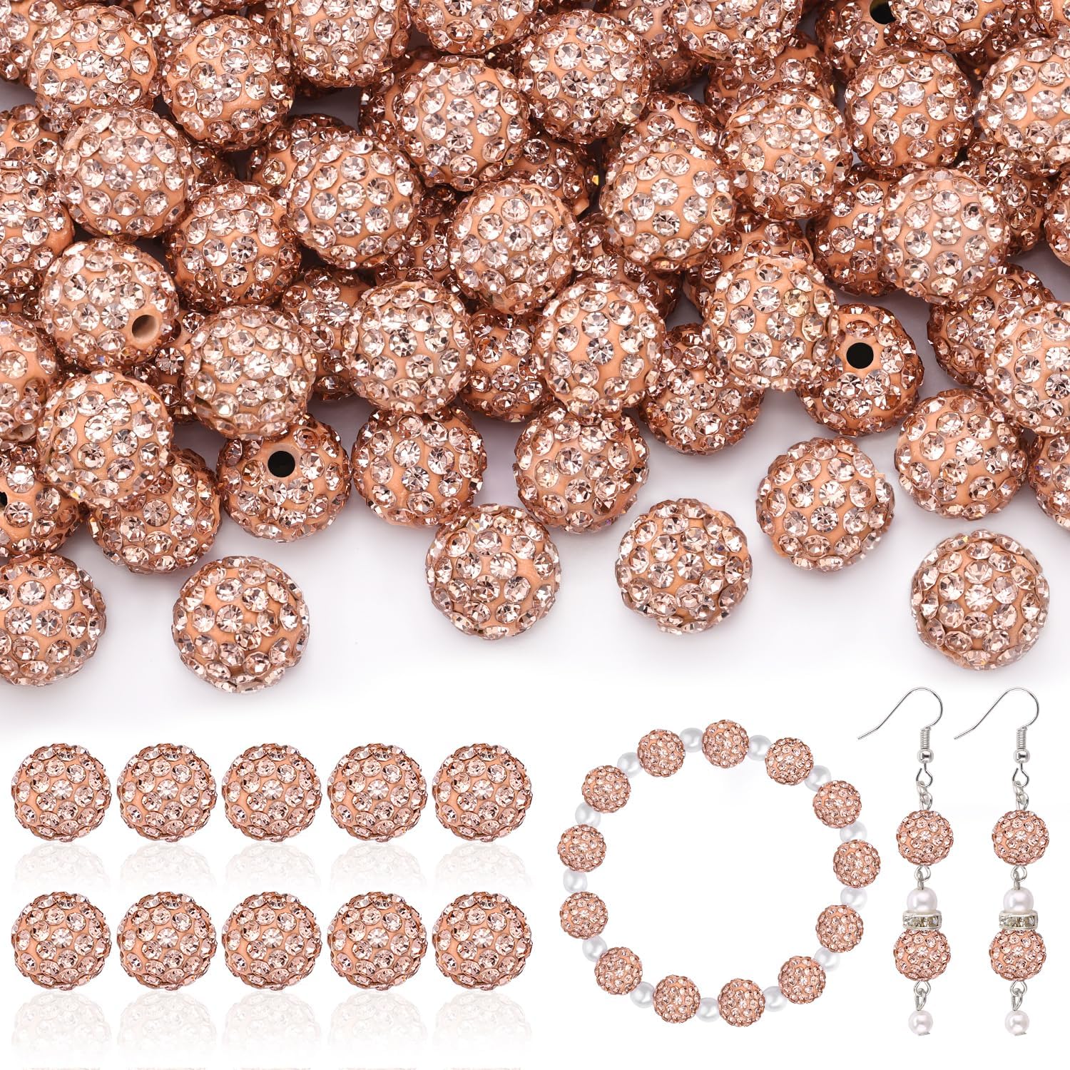 160pcs 10mm Rhinestone Beads for Jewelry Making, Light Peach Shiny Round Disco Ball Beads Bulk, Sparkle Crystal Clay Christmas for Bracelet Baseball Necklace Earring Crafting and DIY