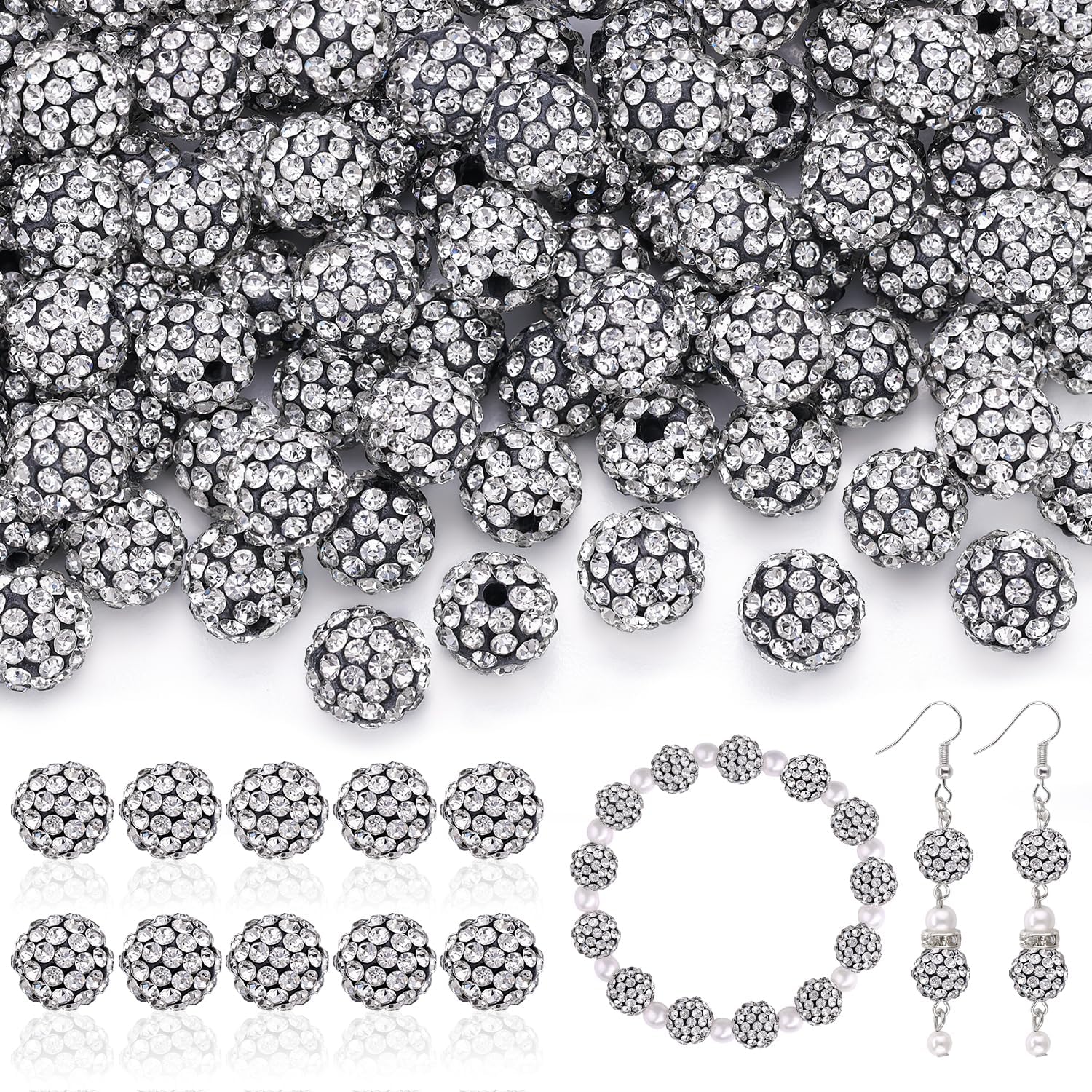 105pcs 10mm Rhinestone Beads for Jewelry Making, Black White Shiny Round Disco Ball Beads Bulk, Sparkle Crystal Clay Christmas for Bracelet Baseball Necklace Earring Crafting and DIY