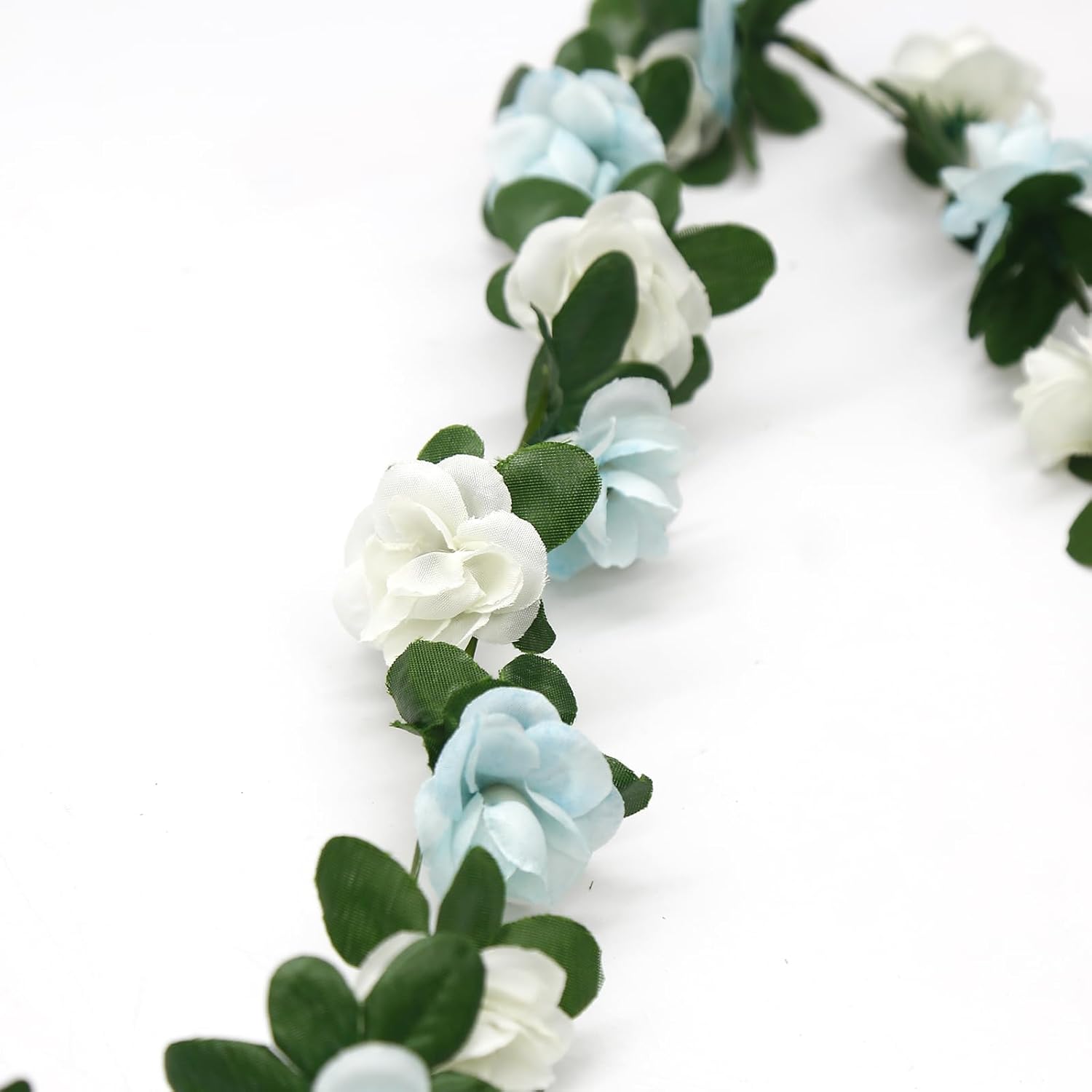 - Packaging: Includes 12 artificial flower garland, each with 45 light blue silk roses and 45 leaves