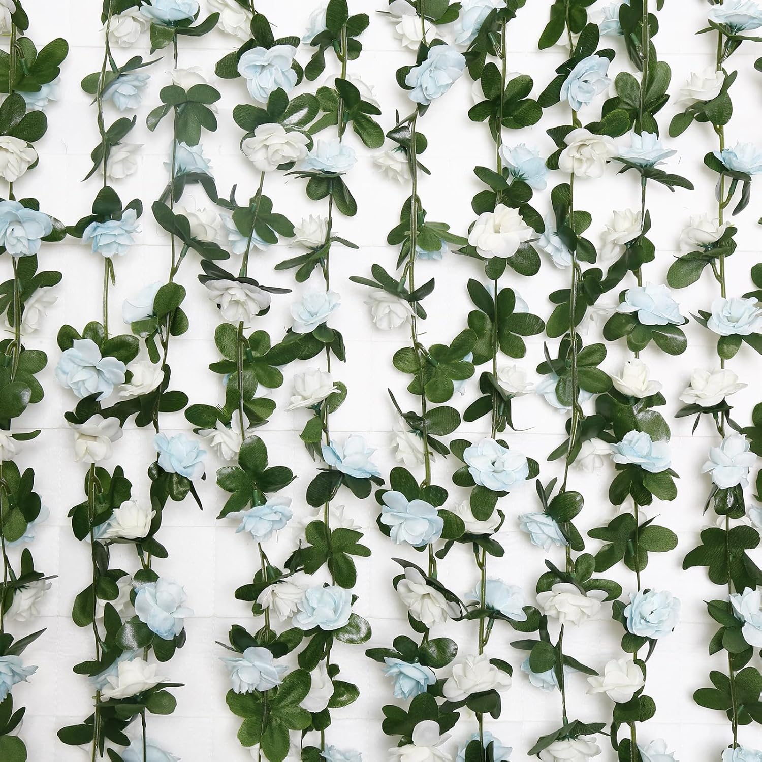 12 PCS 98.4 FT Artificial Flower Garland Rose Garland for Wedding Room Decor(12,Light Blue)