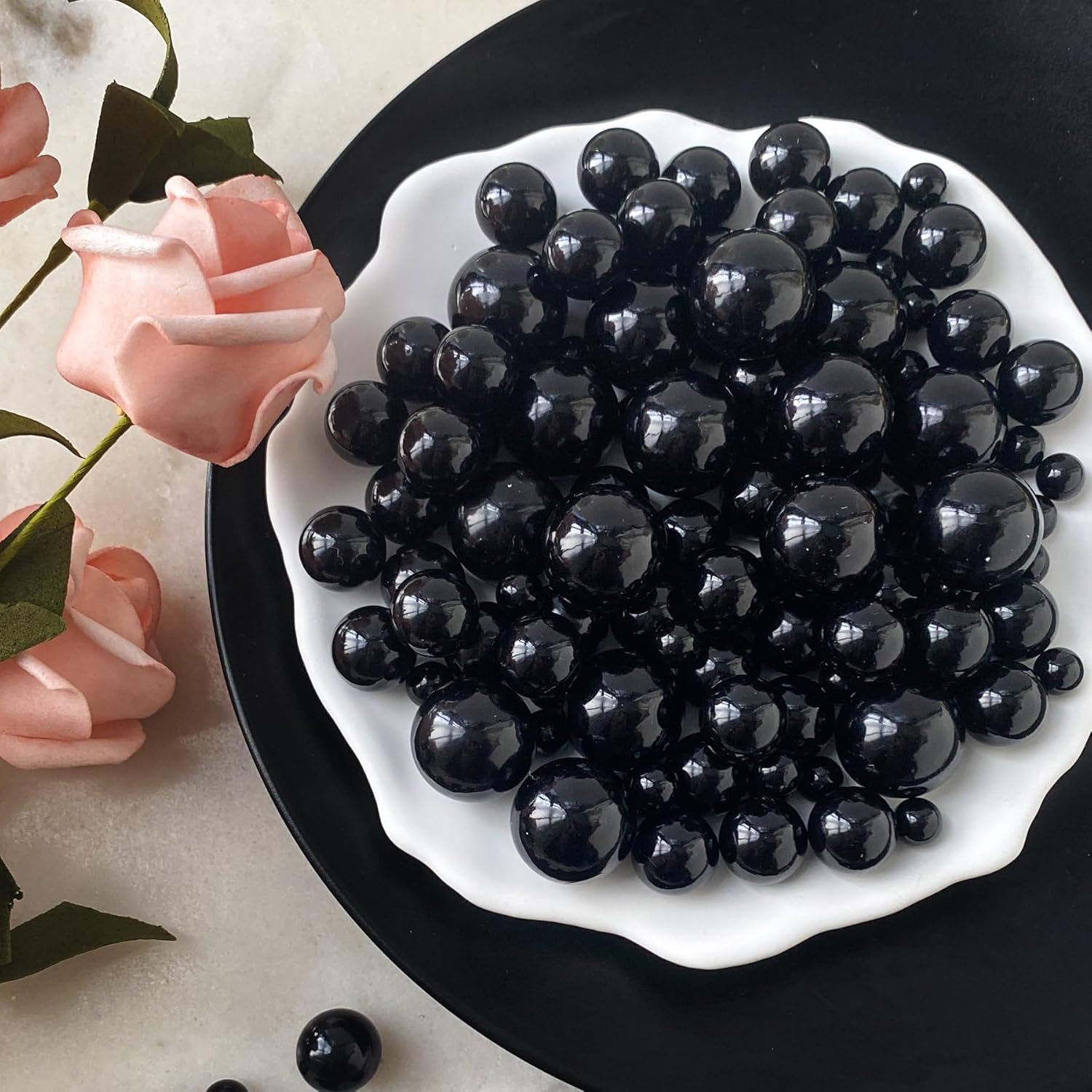 120 PCS 8/14/20mm No Hole Polish Pearl Beads for Centerpiece, Black Beads Decorative Vase Fillers, Plastics Pearls for Vases, Table Scatters, Wedding Party Decor