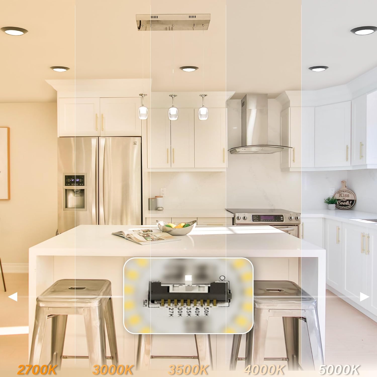 - SMOOTH DIMMING & 5CCT SELECTABLE: Compatible with most of the TRIAC/ELV dimmers, smoothly dimming capabilities (10%-100%) that fit your any need. (PLEASE refer to the dimmer list for selecting a right one for best dimming performance).Don't forget to select the right color temperature at the back of the unit from 2700K-3000K-3500K-4000K-5000K before installation.