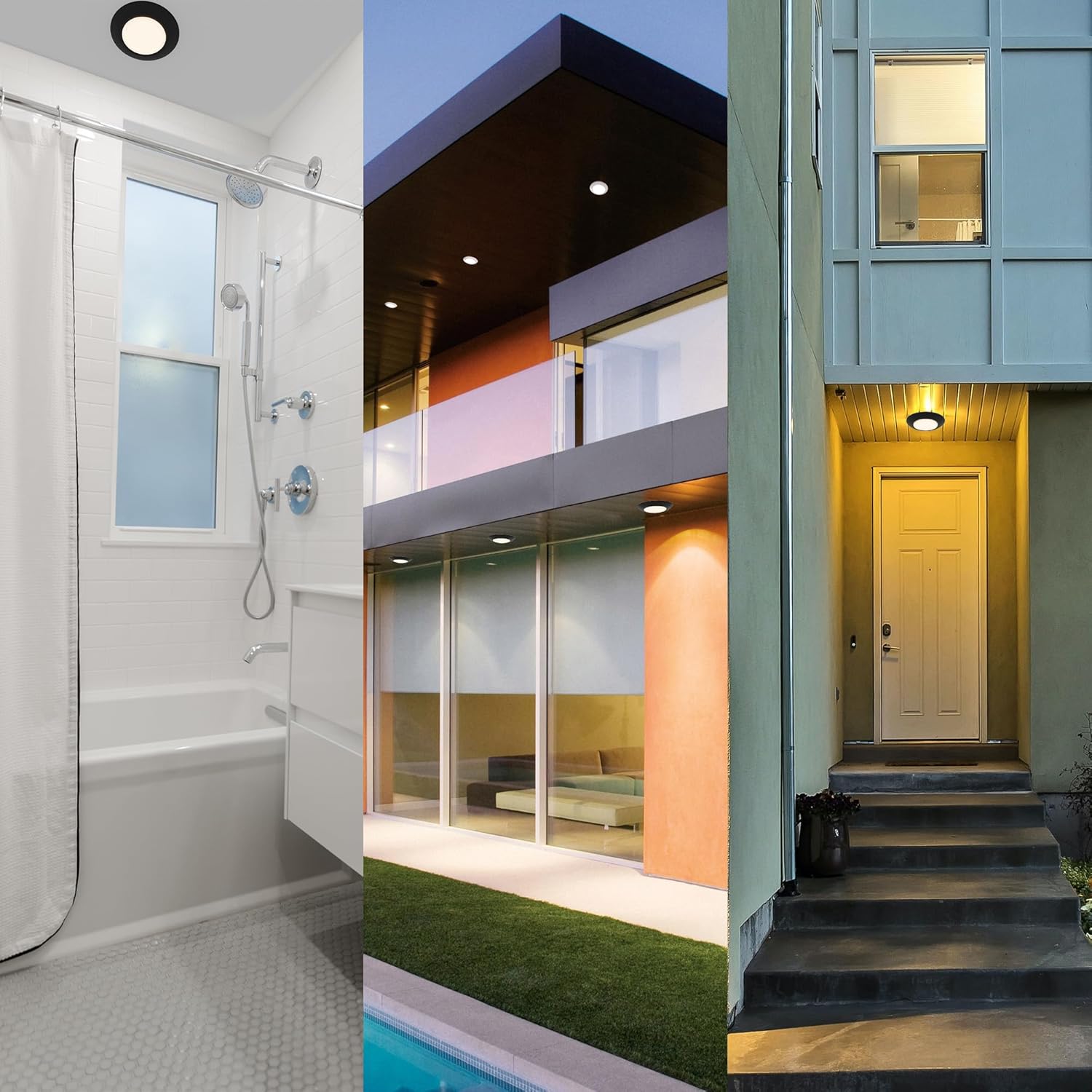 - WIDE APPLICATIONS: Ideal for entrances, living rooms, bedrooms, kitchens and dens as well as in damp and wet locations, such as bathrooms, showers or outdoors under a porch or eave and many more.