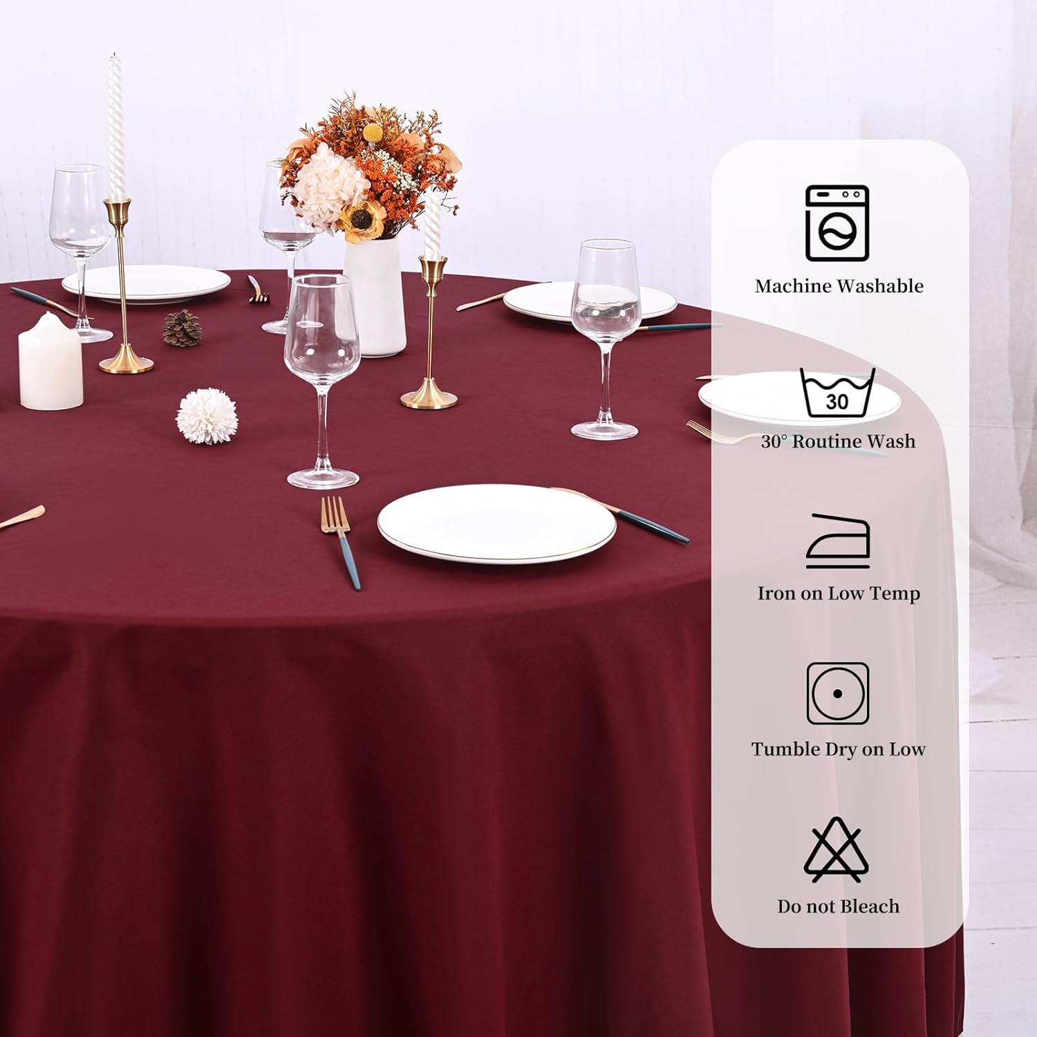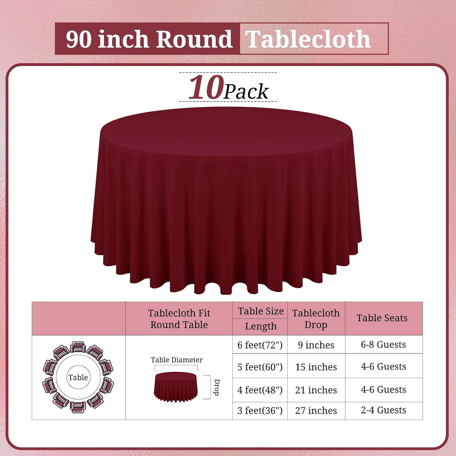 10 Pack Burgundy Round Tablecloths - 90 Inch, Polyester Table Cover, Stain and Wrinkle Resistant Washable Fabrics, Perfect for Wedding Banquet Parties
