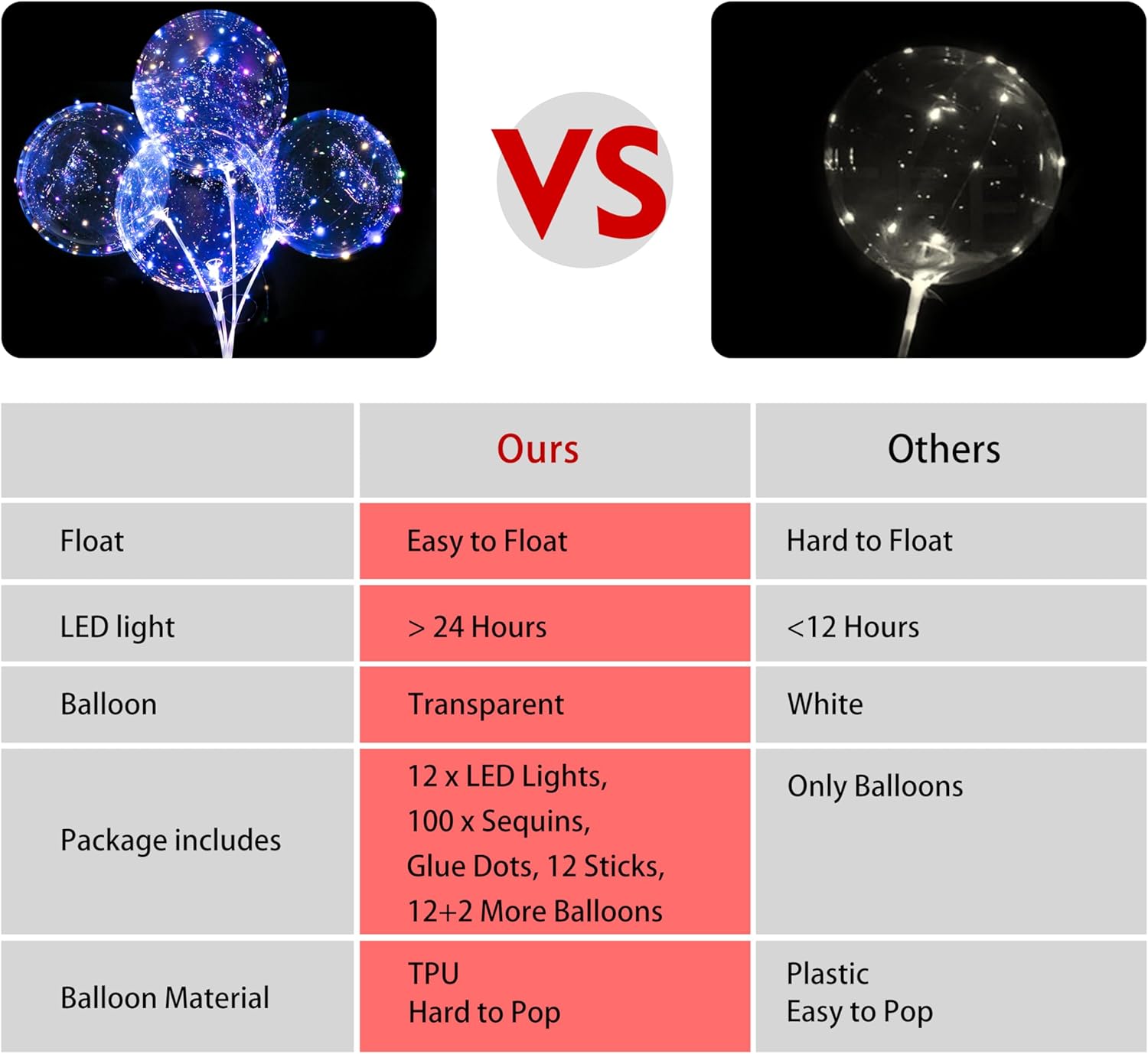 - ALL NEEDS INCLUDED - Our light up balloons include 12+2 balloons and 12 colorful string lights that are easy to assemble. The led balloon lights we offer ensure that your decorations remain bright and beautiful for hours, enhancing the party atmosphere from start to finish