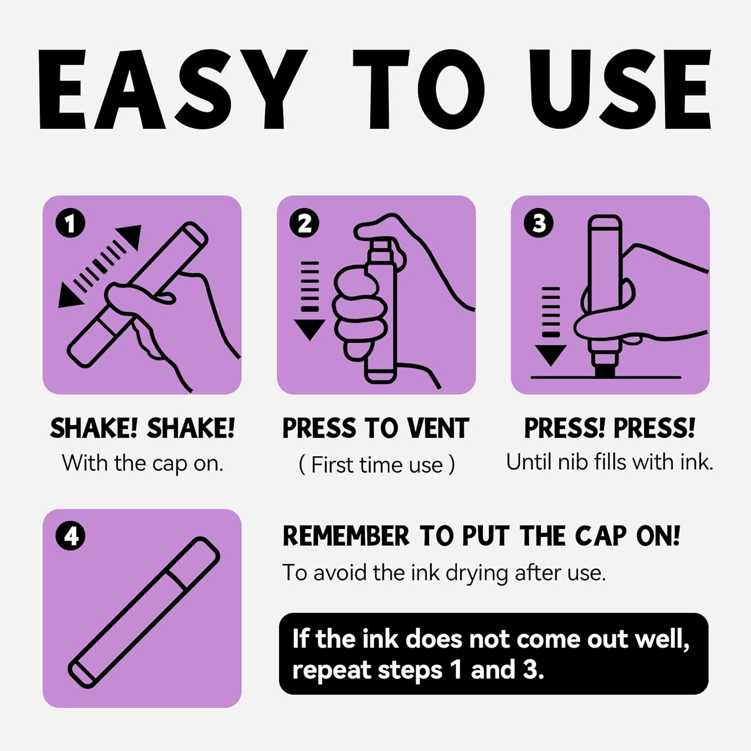 - 3-IN-1 NIB: (fine, medium, and jumbo) The thick tip permanent markers set felt wide tip is not only equipped with 3-IN-1 nib, but also allows the jumbo marker paint pen to produce smooth and even ink