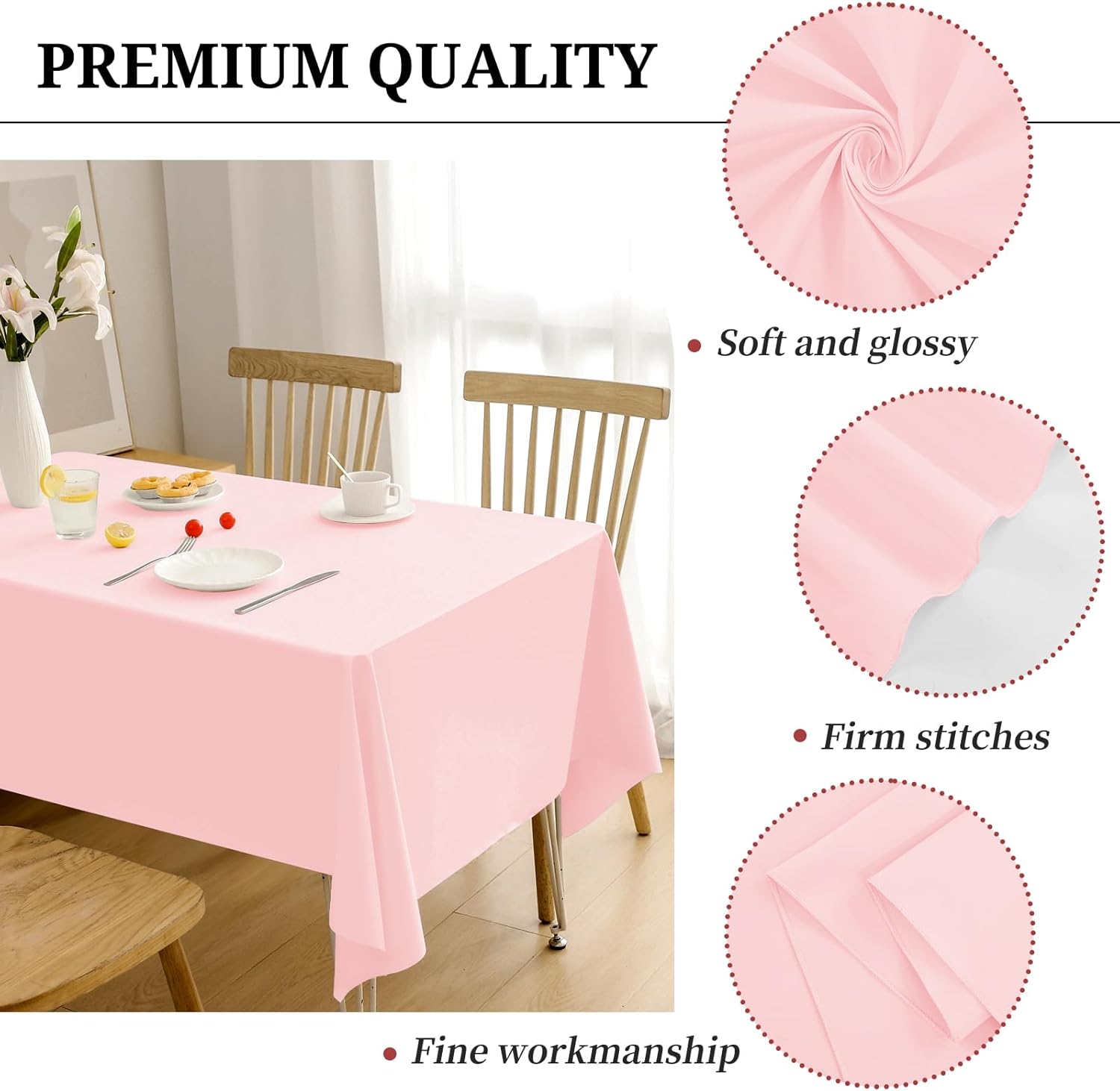 - 【Multipurpose Table Covers】The solid color tablecloth is simple and versatile, suitable for all occasions. These tablecloths are suitable for any indoor and outdoor dining occasion either for decorative or functional uses. The rectangle tablecloth is perfect for party, weddings, birthday parties, banquets, baby showers, bridal showers, buffet tables, restaurants, cafes, dessert tables, picnics, barbecues, camping, indoor, outdoor and everyday kitchen use.