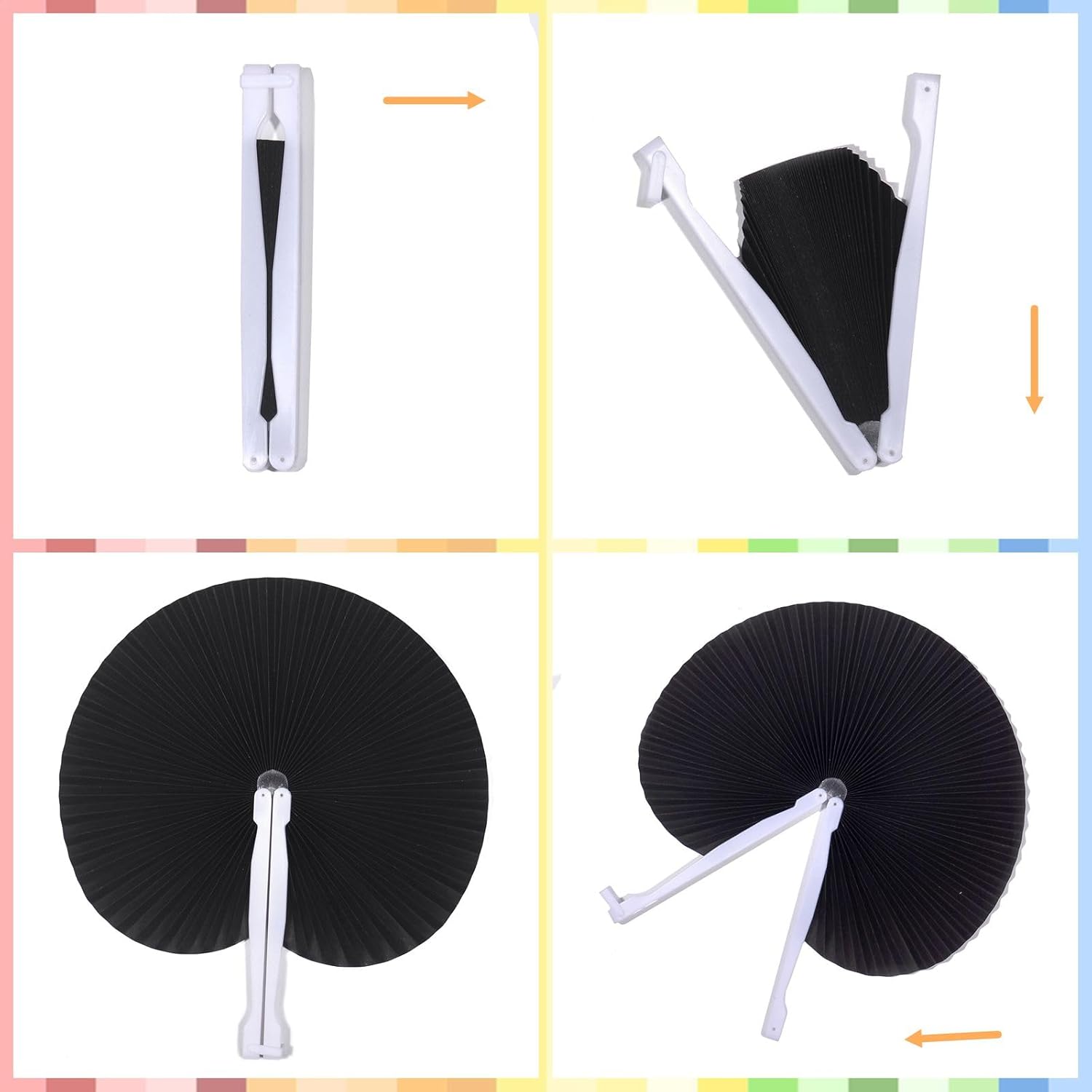 12 Packs Decorative Paper Folding Hand Fans Handheld,Black Round Foldable Wedding Fans Chinese and Japanese Fans Bulk for Bridal Guest Church Party Favors Dancing Birthday DIY