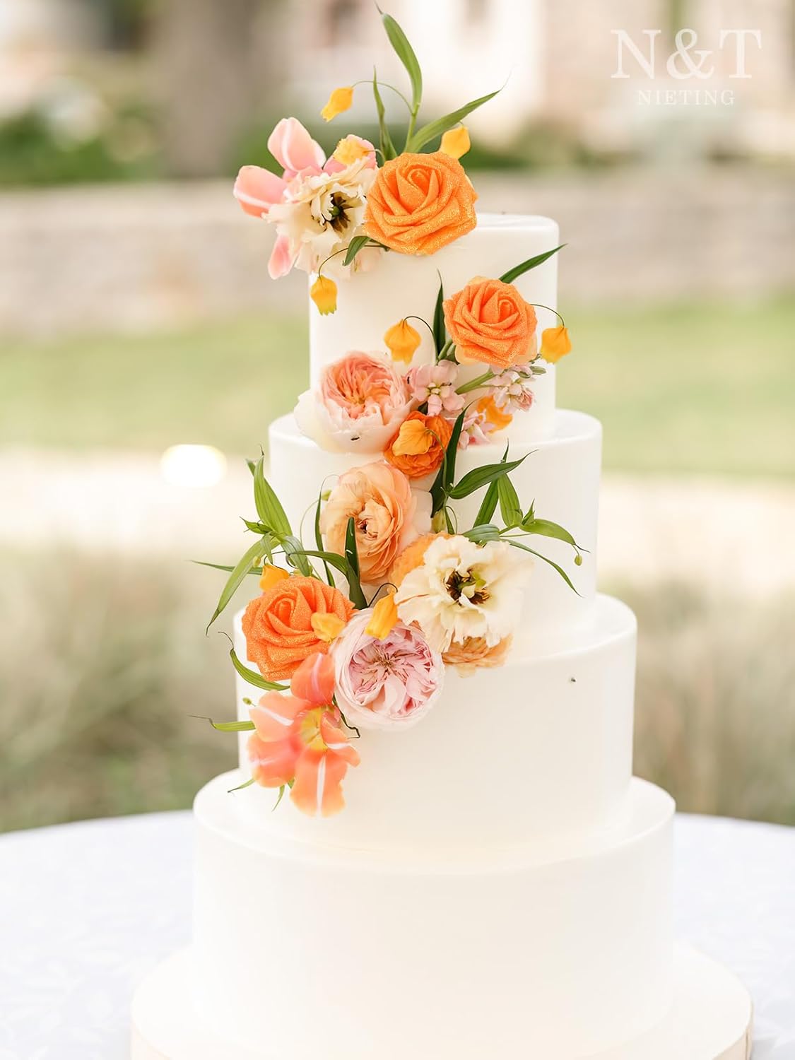 N&T NIETING Artificial Roses Flowers, Fake Glitter Flowers Burnt Orange Roses Perfect for DIY Wedding Bridal Bouquets Centerpieces Bridal Shower Party Home Flower Arrangement Decorations, 25Pcs