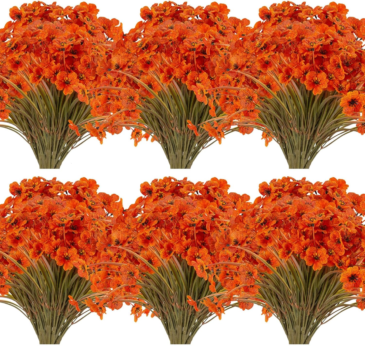 - 【Care Free】: The orange flower heads abandon the traditional plastic flower heads (the single color is easy to fade and the decoration is unstable). These artificial fall plants are UV resistant. The high-end appearance artificial flowers are very suitable for any landscaping project or decoration style, without worrying about the sun, watering, pruning or other maintenance; no matter where you choose to display, these artificial fall flowers will always bloom.