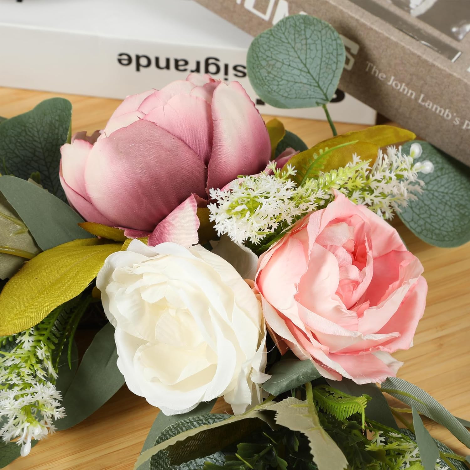 H&W 2pcs Artificial Wedding Arch Flowers for Wedding Sign, Floral Swag Dusty Decor for Reception Ceremony Backdrop Sweetheart Table (Mixed Color Peony)