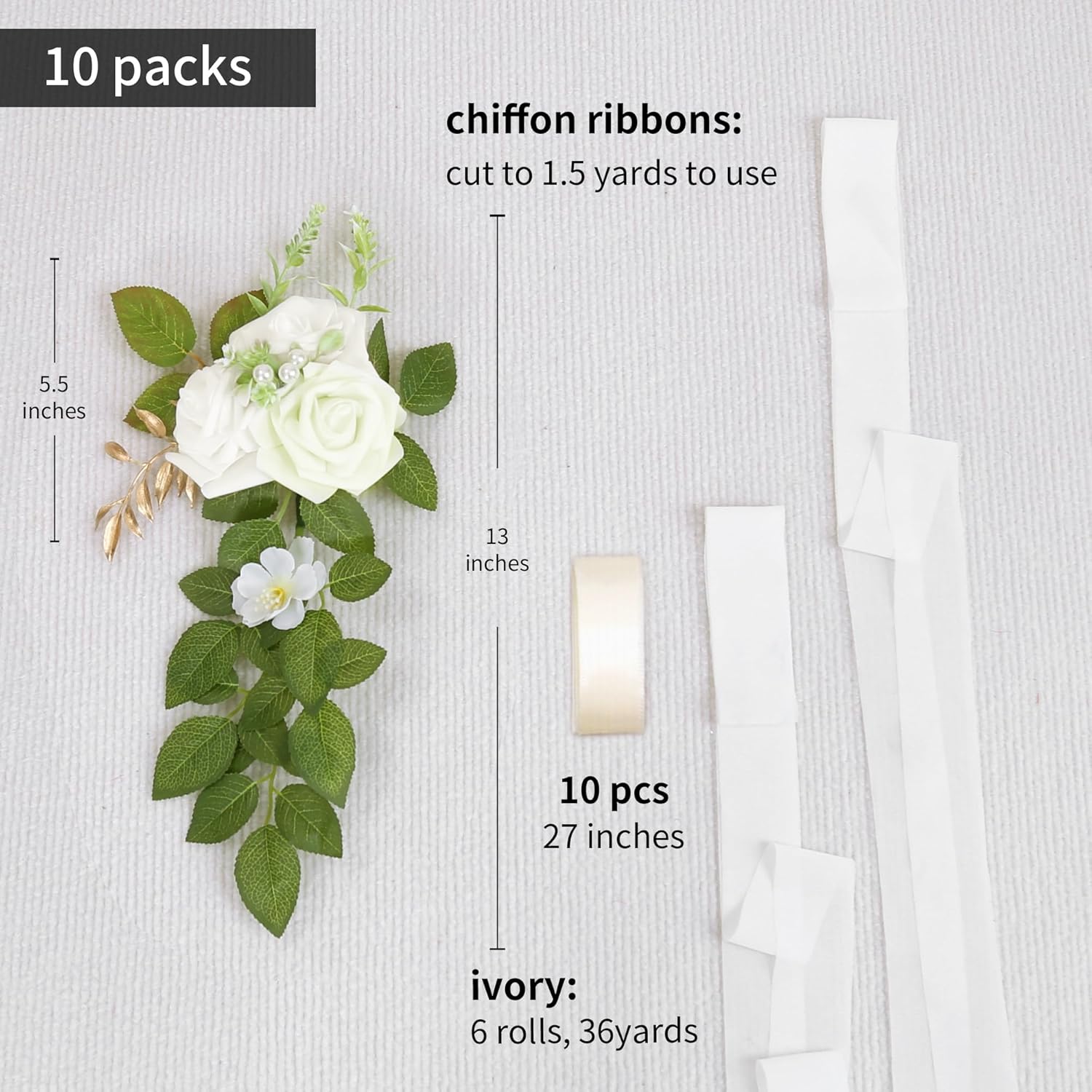 - Budget-Friendly and Great Value: Each set includes 10 pre-made aisle decoration flowers, along with 6 rolls of soft, handmade chiffon ribbons (6 yards per roll, easily cut to your desired length). This affordable option provides excellent value, allowing you to create a breathtaking wedding aisle without exceeding your budget. These versatile chair decorations can be used to adorn both the wedding aisle and wedding chairs, adding elegance to every aspect of the ceremony.