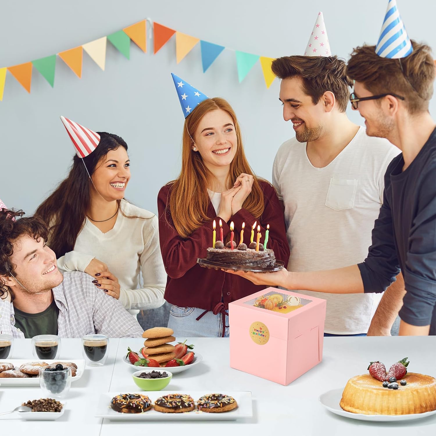 - Easy to Fold: Designed for convenience, these pink cake safe transport box with window are flat and pre-folded, easy to assemble. Fold the cake pop boxes along the pre-folded crease, put in delicious cake, Blank sticker allows you to write warm message on it, attach the sticker to the bakery boxes, adds a personal touch to your gifts
