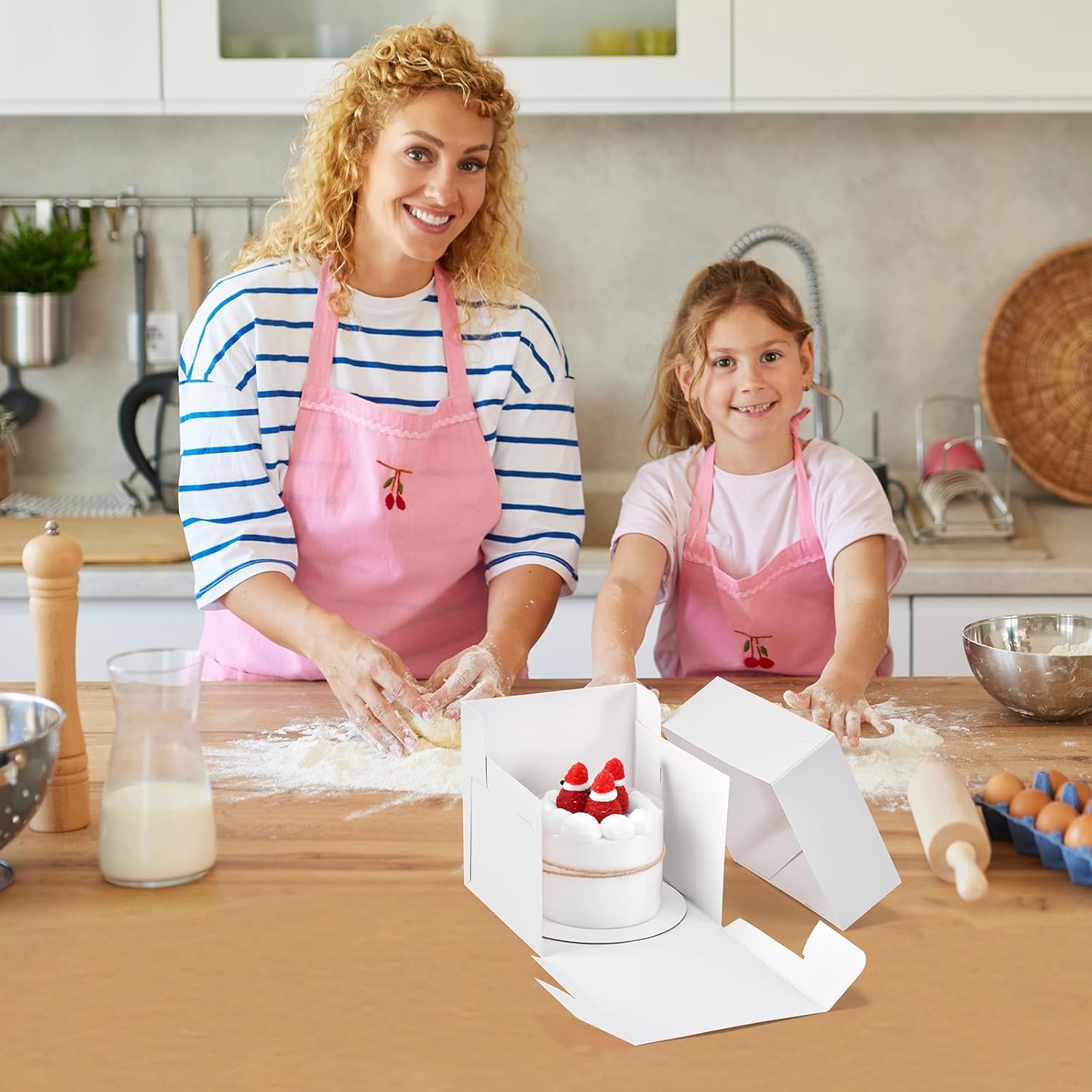 - Cake Boxes 6 Inch: Box Size: 6x6x6 inches,The white small cake boxes are perfect for cake drums within 6'', desserts, pastries, cookies, muffins, donuts, macaron, biscuits, cupcakes, chocolate covered strawberries, bread, other gifts and toys, The 6 inch cake boxes can be folded and stored when not in use, saving space