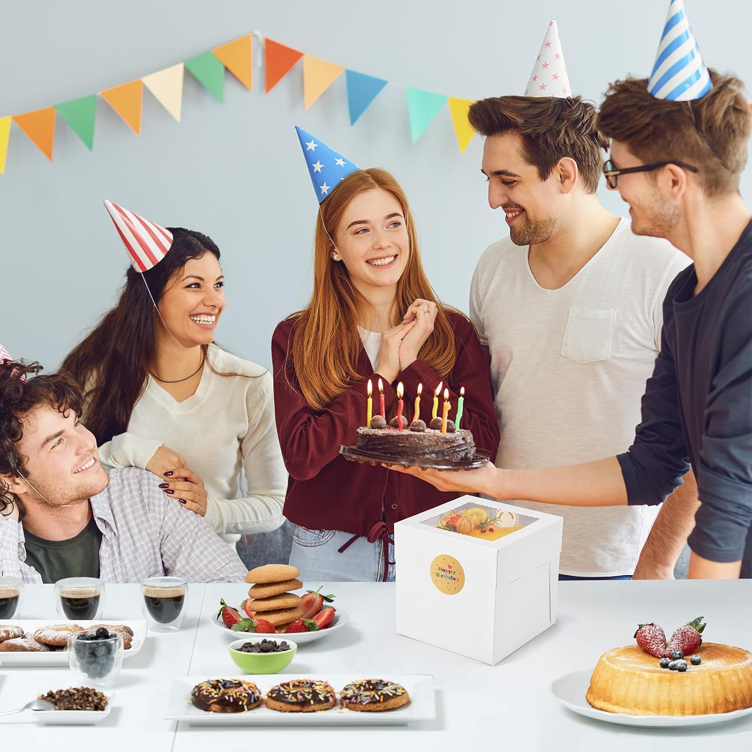 - Easy to Fold: Designed for convenience, these white cake safe transport box with window are flat and pre-folded, easy to assemble. Fold the cake pop boxes along the pre-folded crease, put in delicious cake, Blank sticker allows you to write warm message on it, attach the sticker to the bakery boxes, adds a personal touch to your gifts