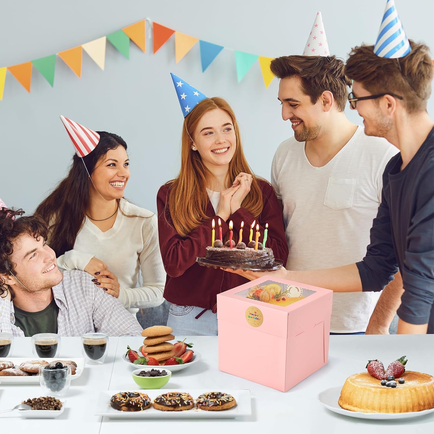 - Easy to Fold: Designed for convenience, these pink cake safe transport box with window are flat and pre-folded, easy to assemble. Fold the cake pop boxes along the pre-folded crease, put in delicious cake, Blank sticker allows you to write warm message on it, attach the sticker to the bakery boxes, adds a personal touch to your gifts