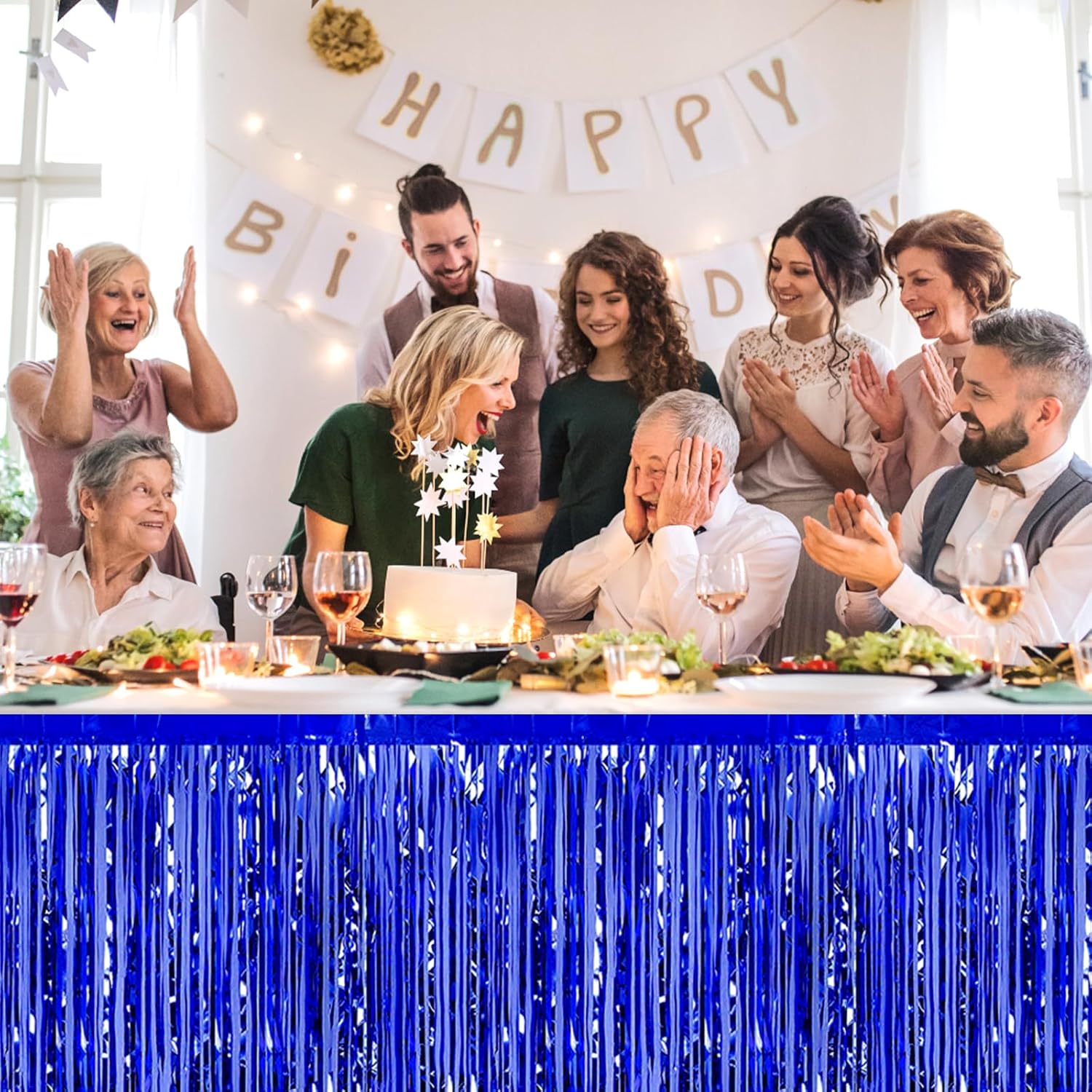 3 Pack 29 x108 Inch Blue Foil Fringe Table Skirts Metallic Banner for Tinsel Streamer Garland Backdrop for Parade Floats Wedding Thanksgiving Birthday Christmas Halloween New Year Party Decoration