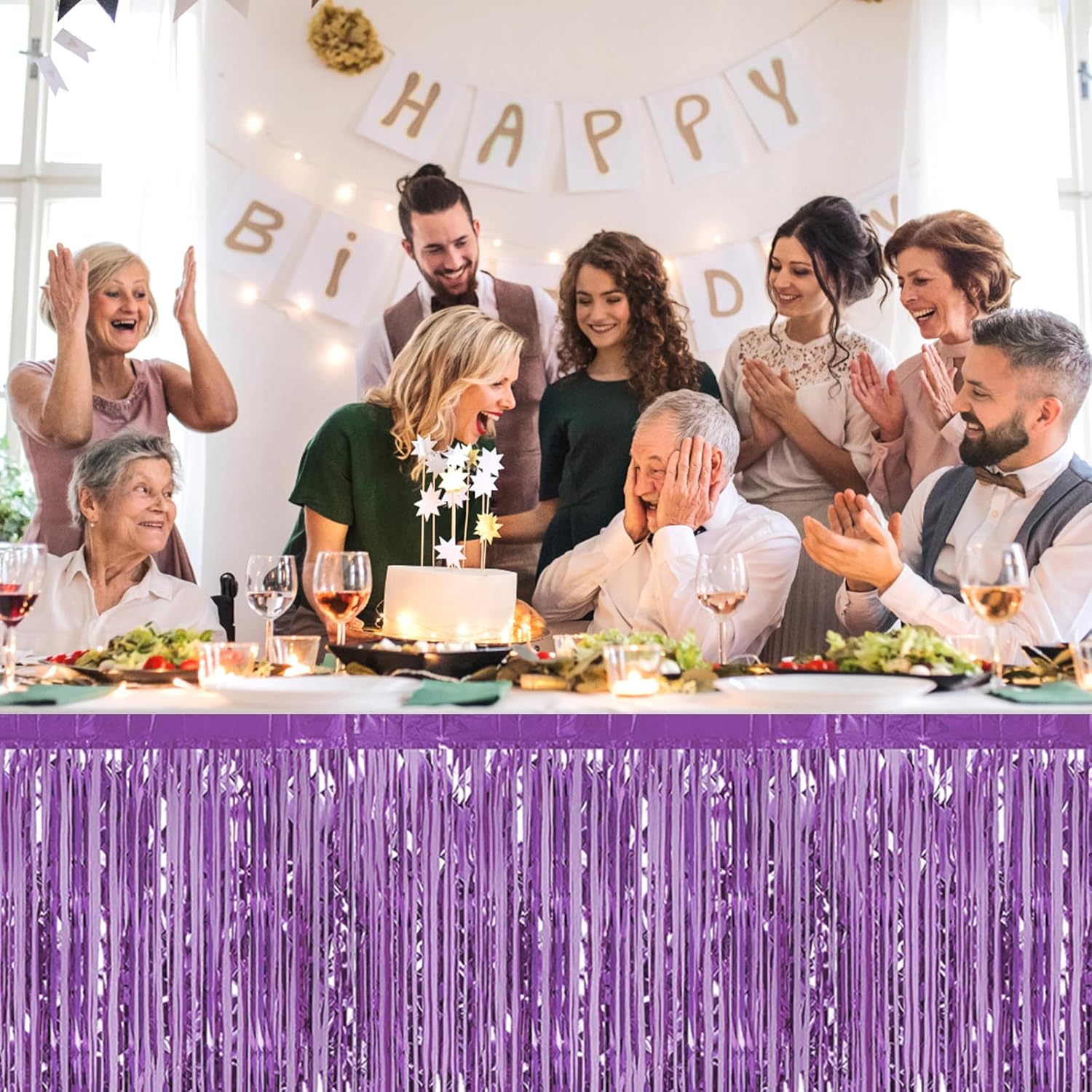 - Beautiful decoration: you can use these tinsel fringe table skirt to decorate a classroom, the stage for school program, a homecoming float, a wedding decoration, birthday party, Disco party, baby shower, halloween, christmas, new year's eve, bachelorette party, anniversary Memorial, Hollywood Party, independence Day, Carnival Party, Bridal Shower, Graduation and more.