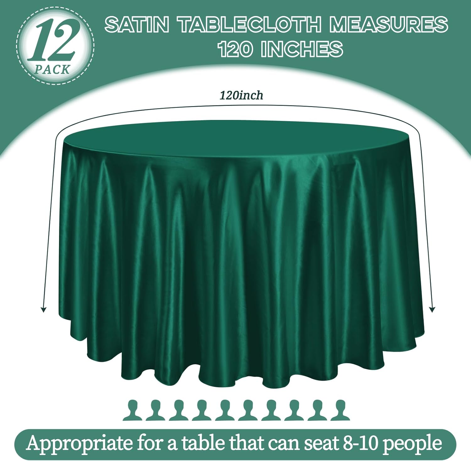 12 Pack 120 Inch Hunter Green Satin Tablecloth - Premium Bright Silky Round Tablecloth Overlay Smooth Fabric Table Cover, Table Decoration for Wedding Party Banquet Events Restaurant Kitchen Dining