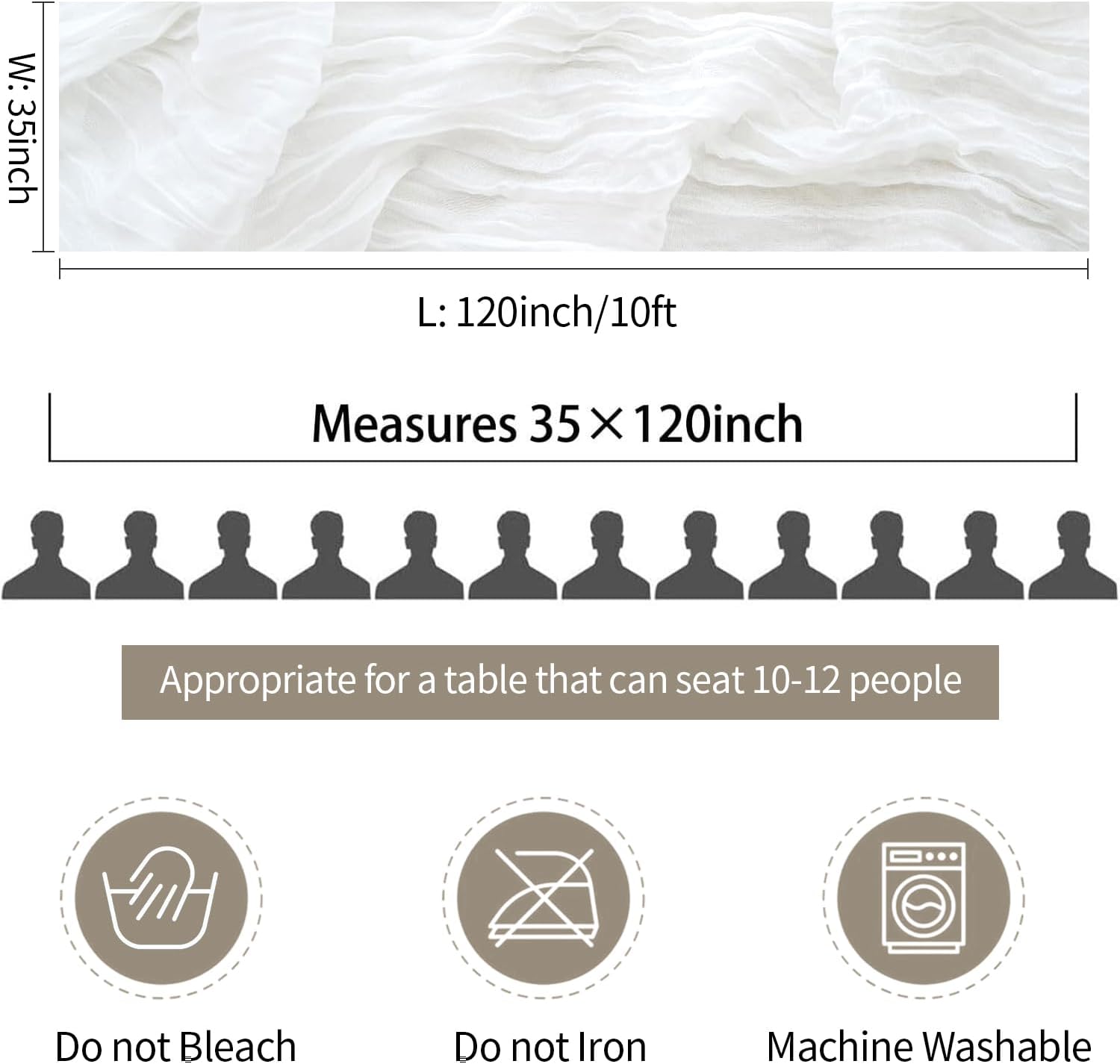 - 🥂【CARE INSTRUCTIONS】The white wedding table runner ivory is suitable for machine washing in a laundry bag or hand washing in cold water with mild detergent. In order to maintain the appearance of the countertop pleated design, we recommend that you do not iron or use hot water, do not use bleach, lay flat or hang to dry. Please note that there may be color changes due to screen resolution and photography limitations.