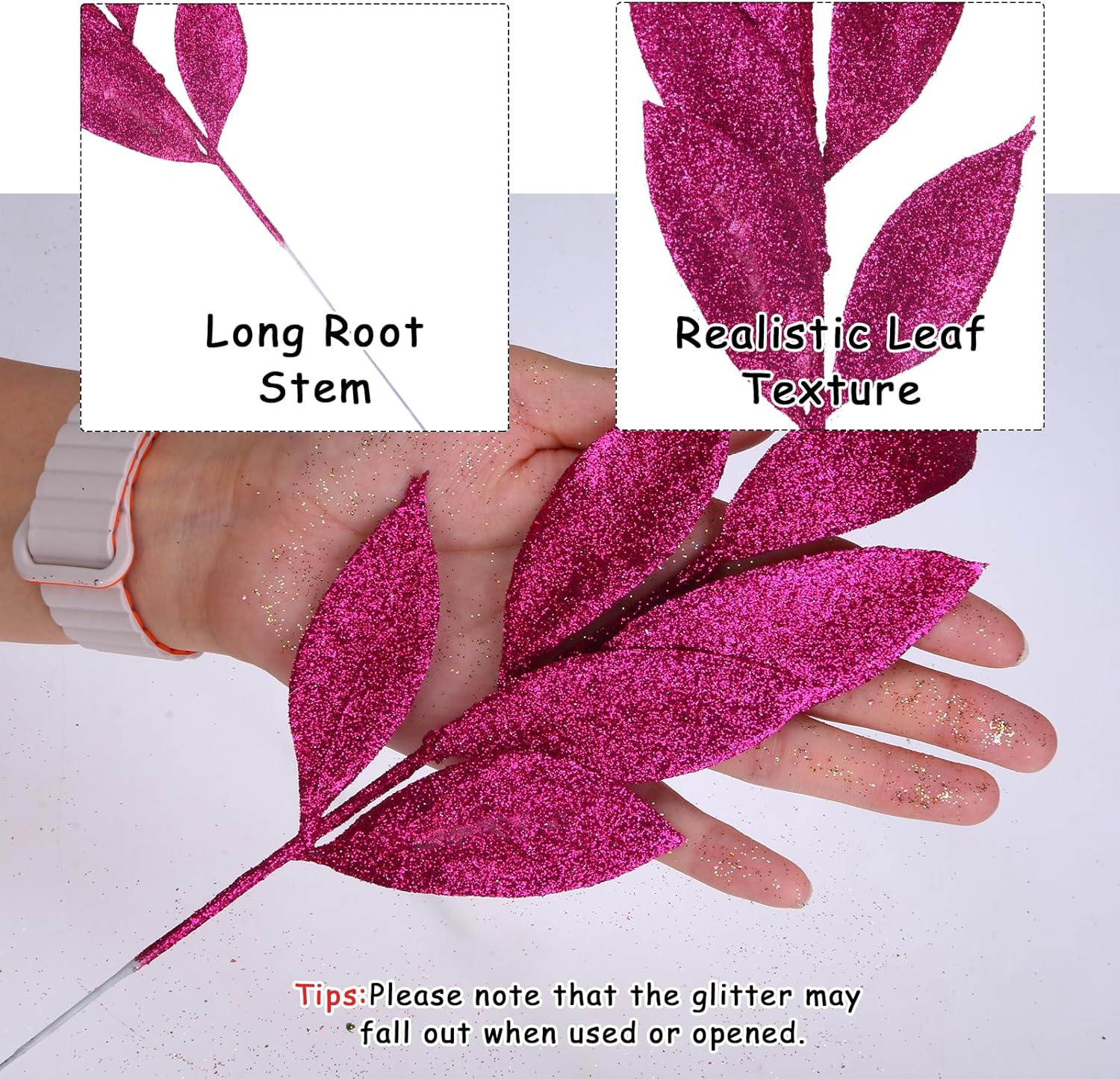 - Package Include: Come with 12 pack artificial glitter leaves. A good choice for your DIY ideas and christmas decorations. The vase is NOT included