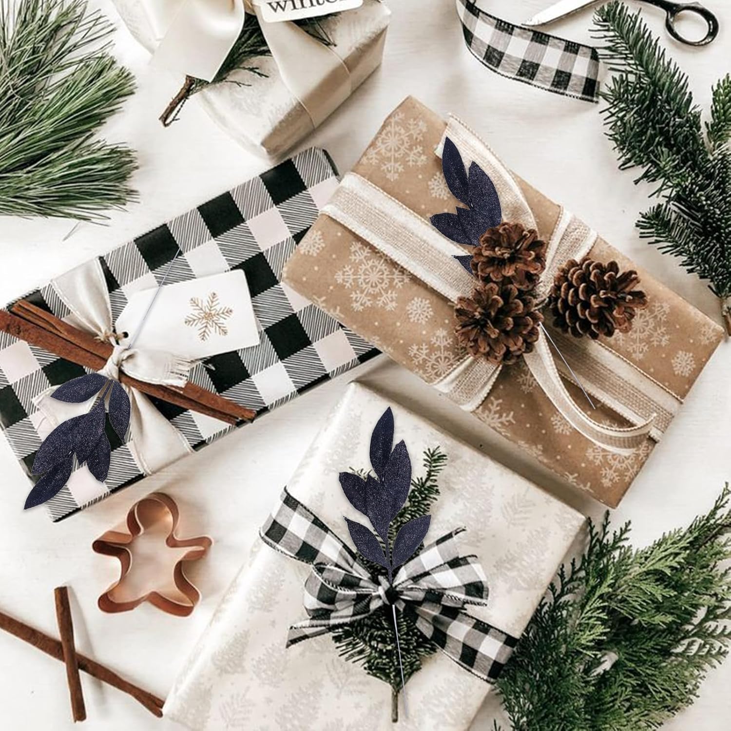 GREENTIME 12 Pack Artificial Black Glitter Leaves 13" Fake Decorative Glitter Sticks for Vase Christmas Tree DIY Wreath Crafts Fireplace Halloween Decor