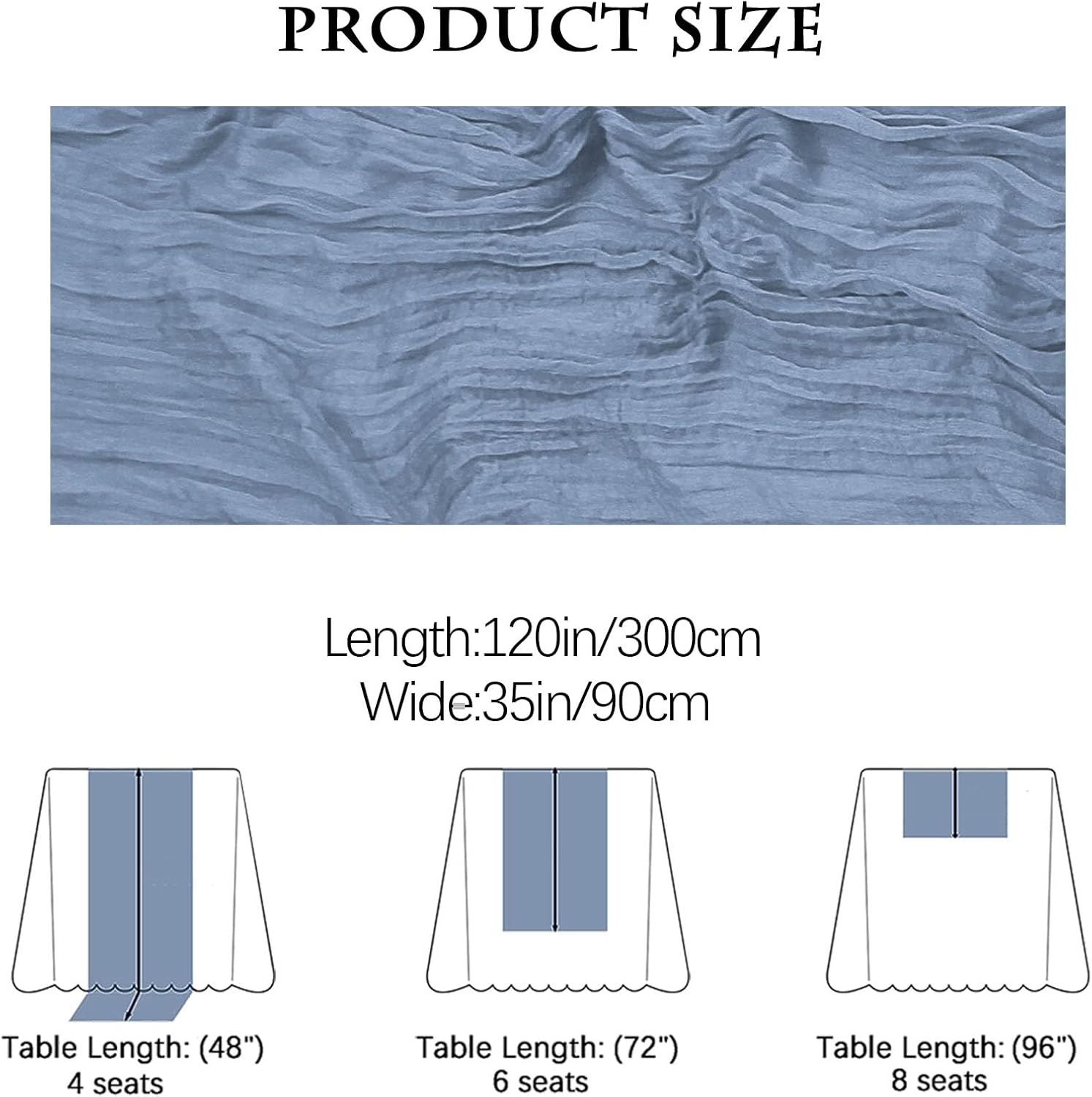 - 🌹【16 Packs 10FT Table Runners】You will receive 16 pcs dusty blue cheesecloth table runner, the quantity is sufficient for your daily use and replacement needs. The dusty blue cheese cloth table runner are 35 x 120 inches / 90 x 300 cm, it's long enough to fit different size tables and chairs. They can also be used as decoration for backdrop draping, ceiling draping, chair cover sashes and gift wrapping, etc, dusty blue table runner can perfectly fit tables or chairs in various event scenarios. There are lots of different colors for you to choose, perfect for romantic and elegant party events.